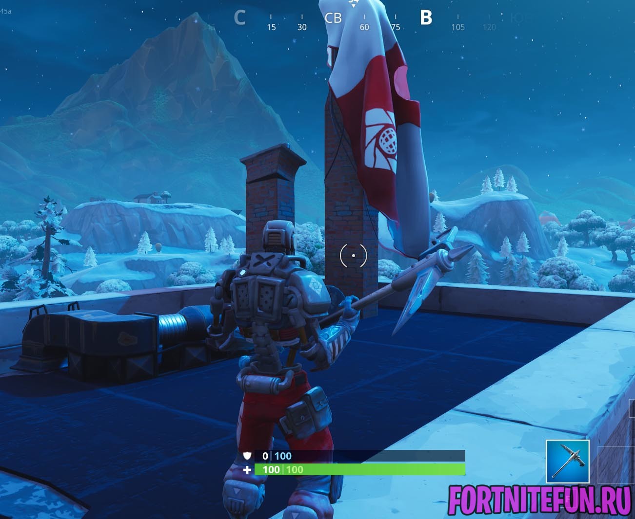 Скин робота прибыл на остров фортнайт в 6 сезоне. Даже после прихода ледяной бури мы всё ещё можем наблюдать парашют Бота, который находится на крыше фабрики фаянса.
