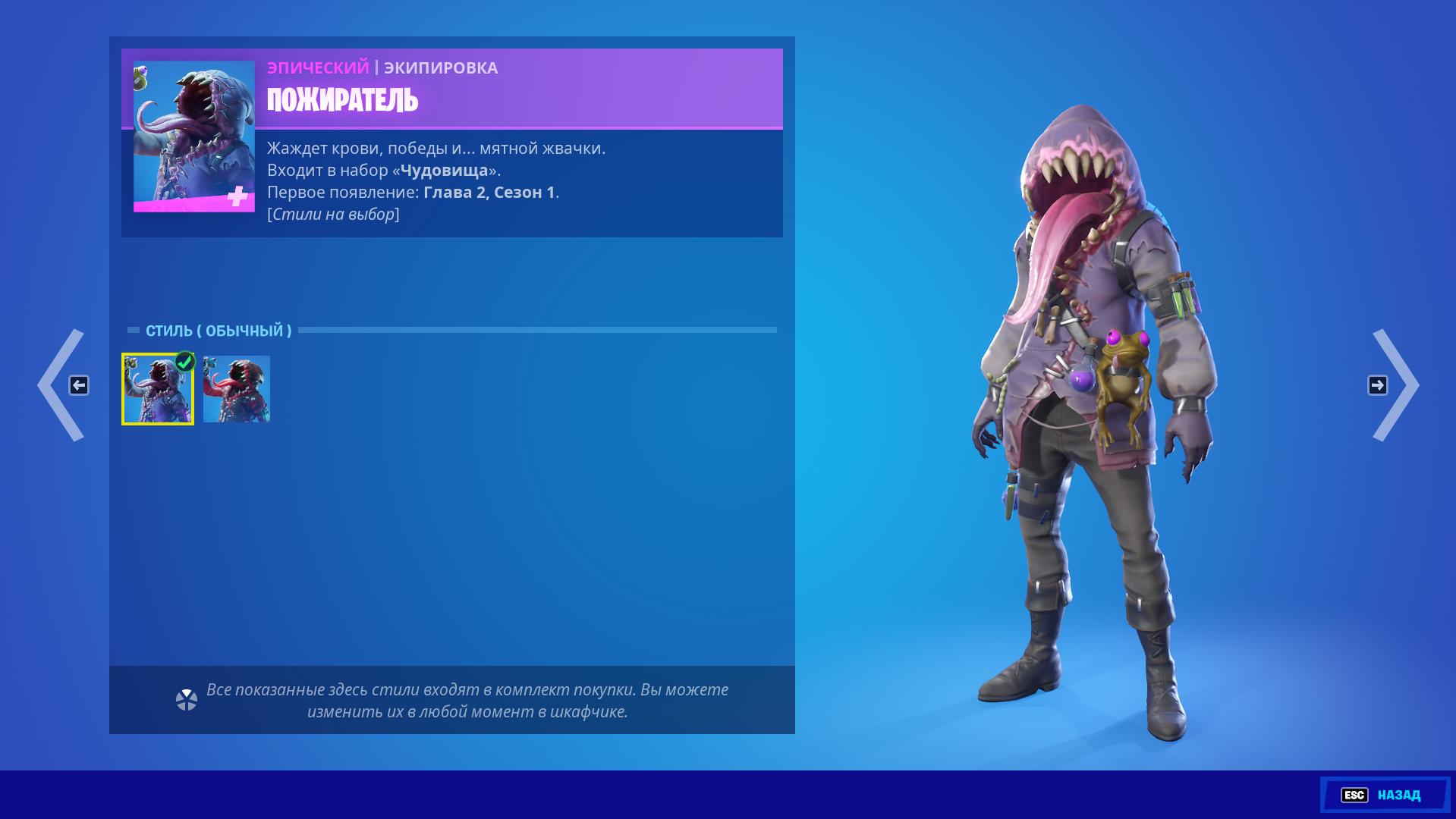 | Экипировка | Эпическая (Epic) | 1 500 В-баксов |
