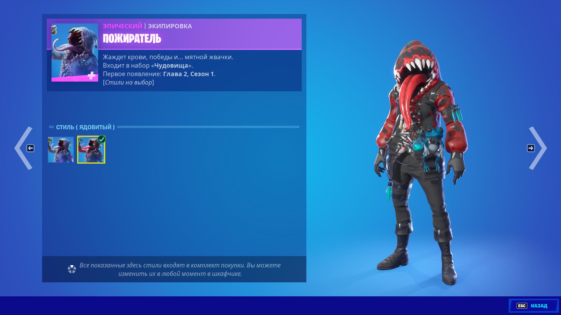 Скин Пожиратель — лучший скин хэллоуина 2019. Даже возвращение пехотинца-упыря было не таким ярким.Не знаю как вы, а я в восторге от данной бездонной пасти. Уверен, что питается он не только ящерицами. Из минусов, всё как обычно, необычный вид скина может вызывать дискомфорт, а ещё очень жаль, что нельзя наслаждаться его внешним видом 24/7, ведь большую часть времени мы видим лишь спину скина.