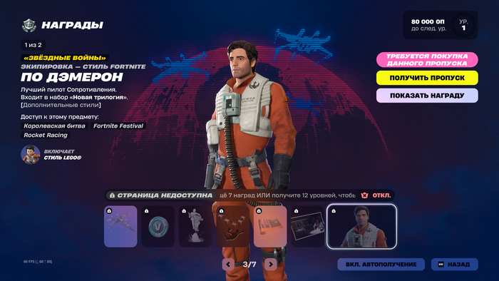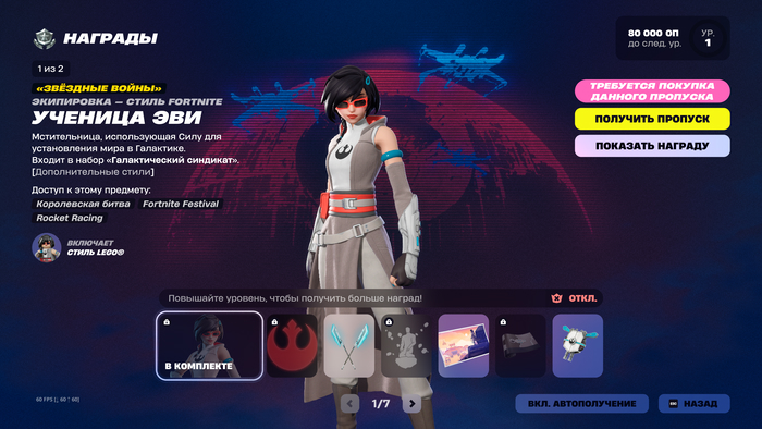 Награды боевого пропуска 1 мини-сезона 6 главы, как нетрудно догадаться, полностью соответствуют вселенной «Звездных войн». А В-Баксов в этом сезоне вы сможете получить только 1000.