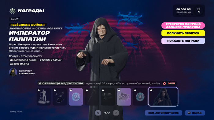В мини-сезоне всего 50 уровней боевого пропуска, и на последней его странице оказался Император Палпатин – один из сильнейших антагонистов серии «Звездных войн».