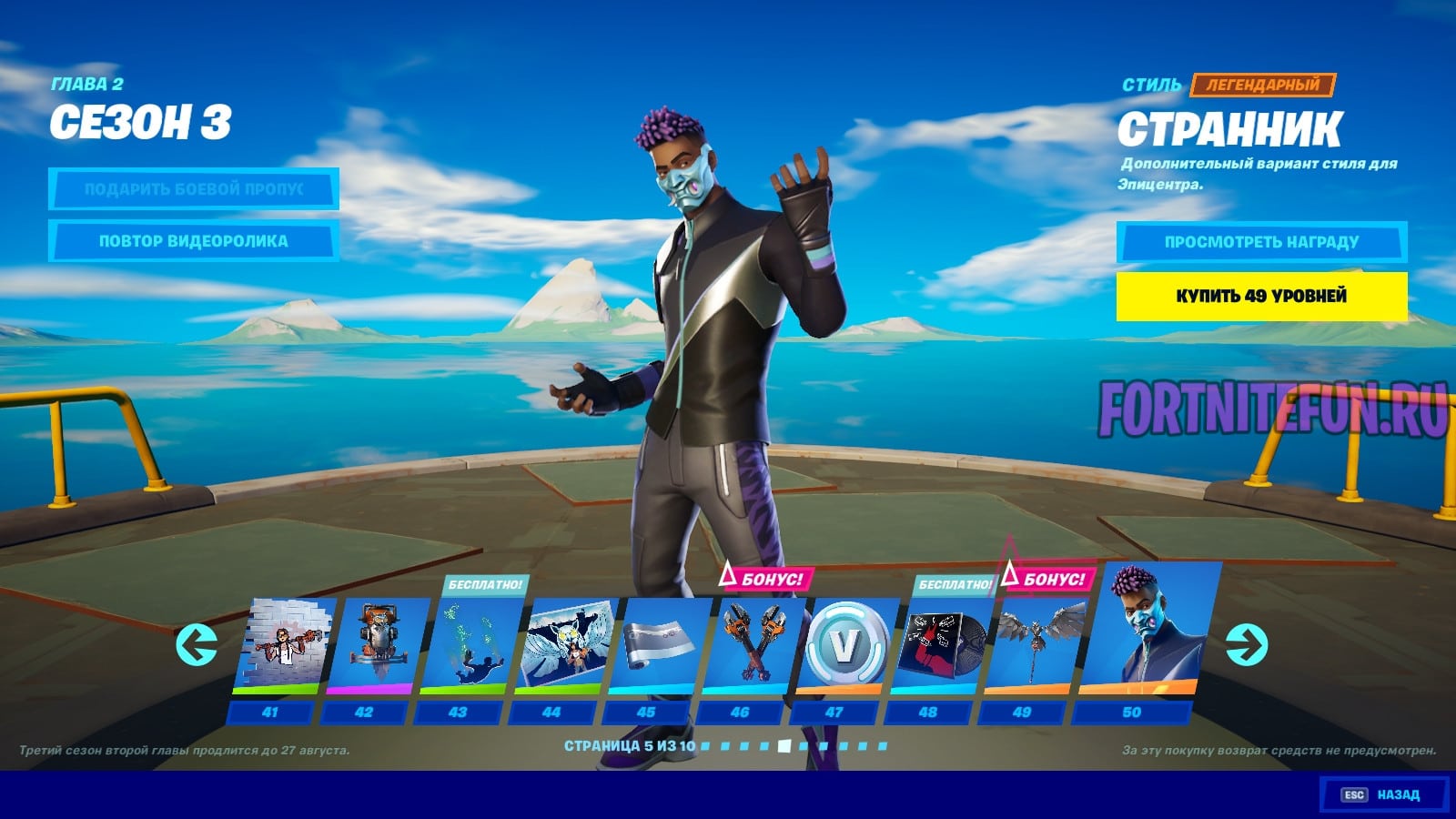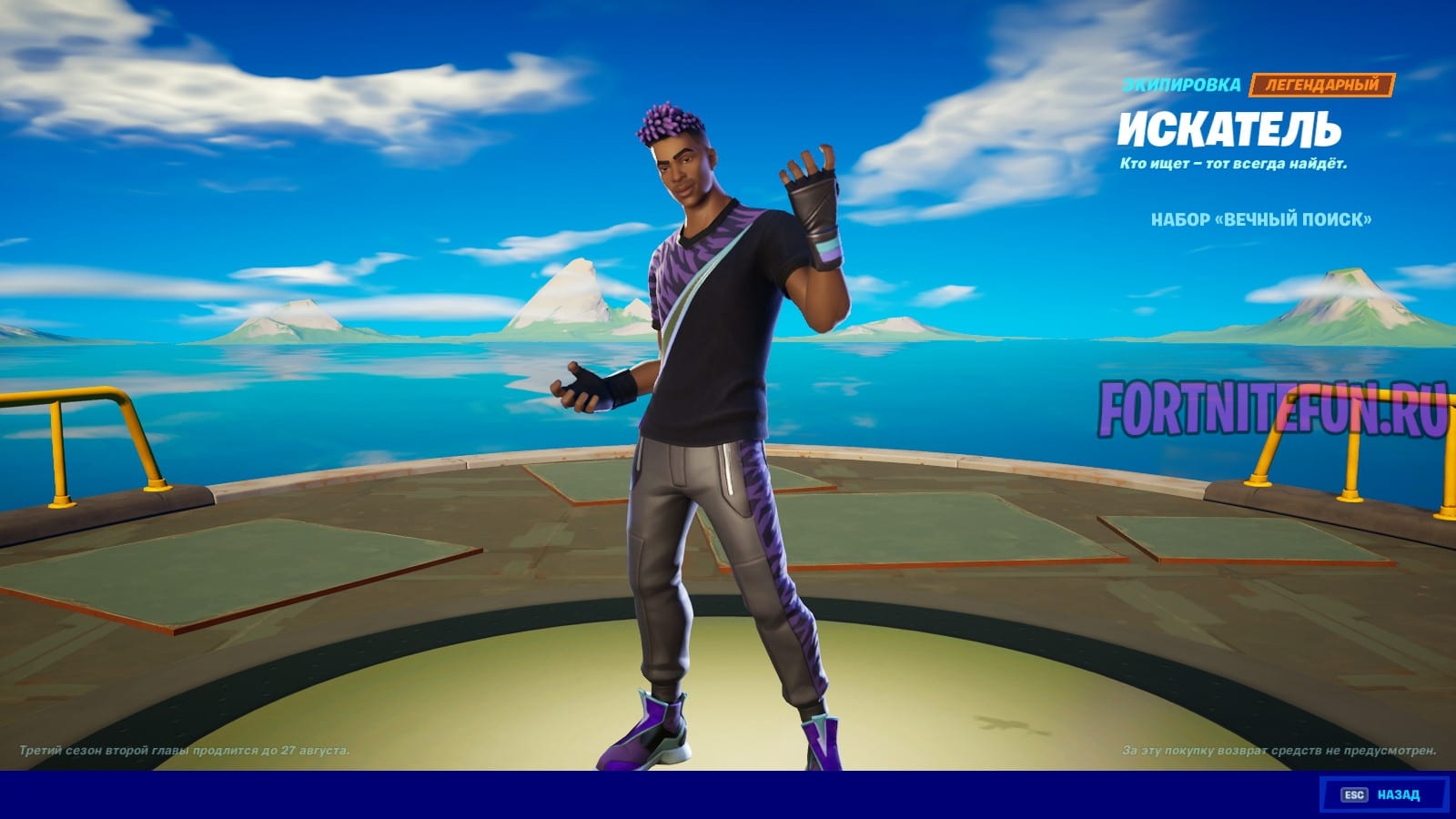 Наградой за 100 уровень боевого пропуска 3 сезона 2 главы фортнайт стал стиль «В маске» к скину «Искатель» и скин «Вечная Воительница».
