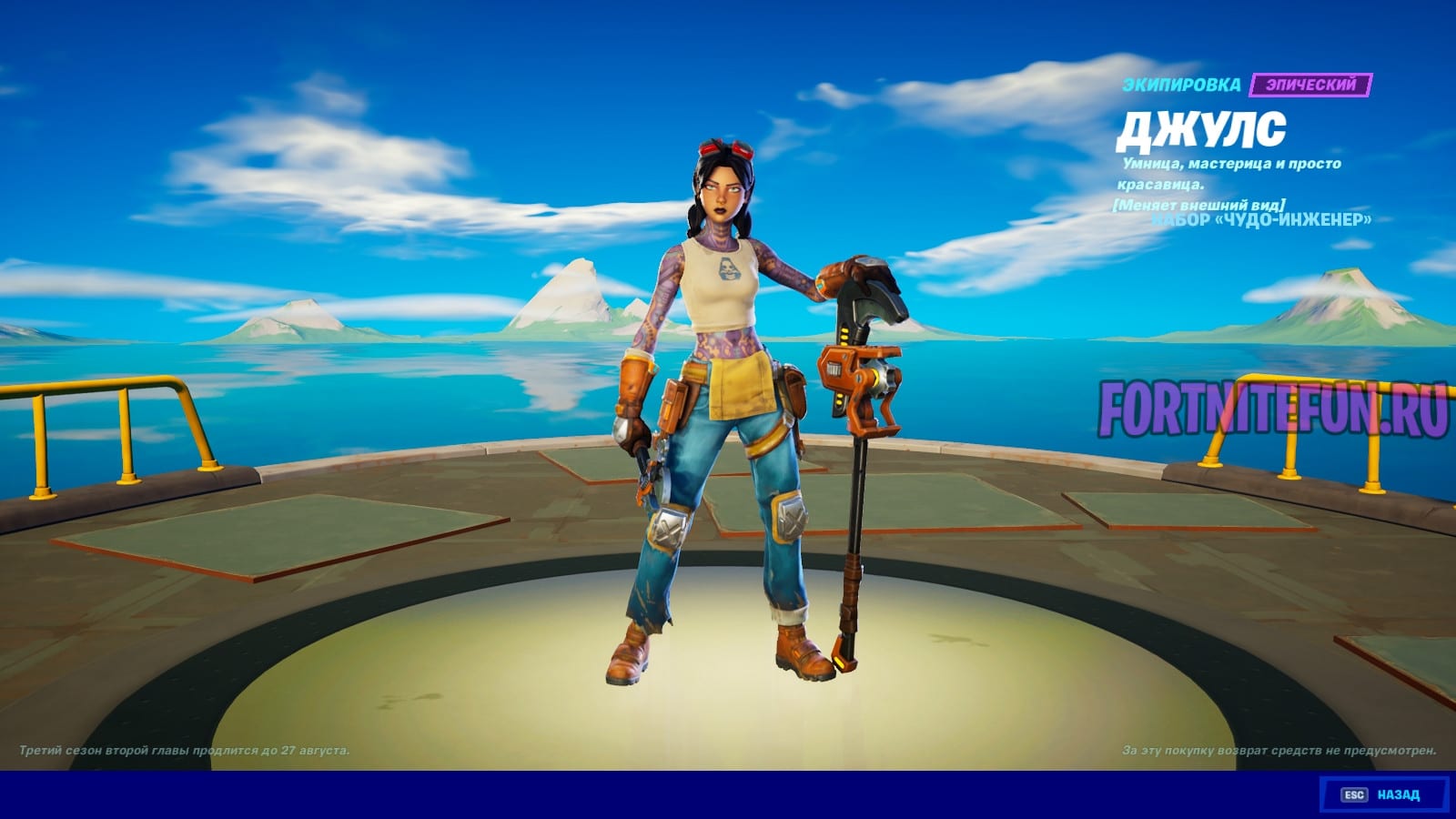 Скин «Джулс» явно призван разнообразить наше нахождение на данных уровнях. Помимо него можно найти и другие косметические предметы, вроде граффити, кирки, танца и в-баксов.