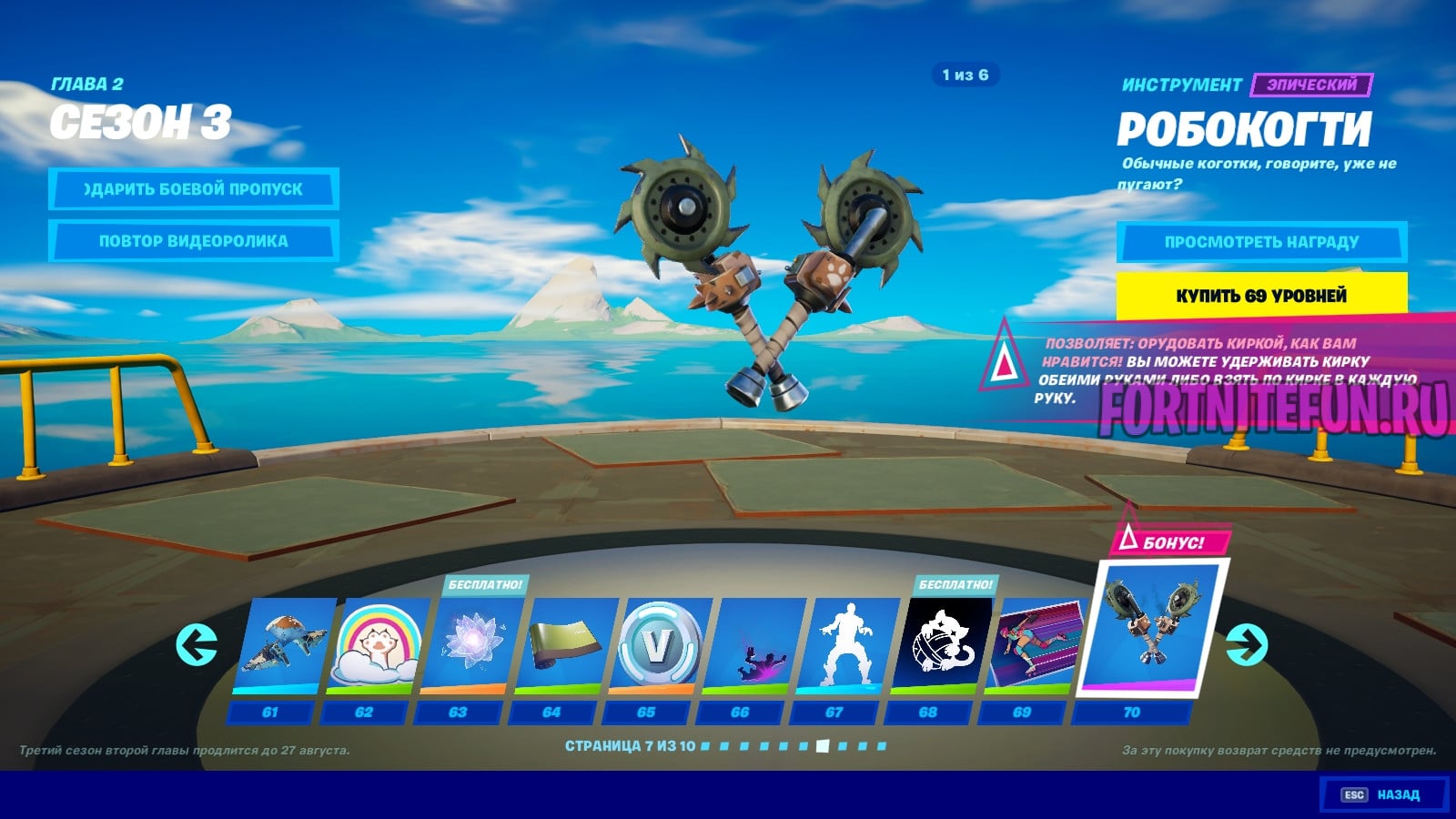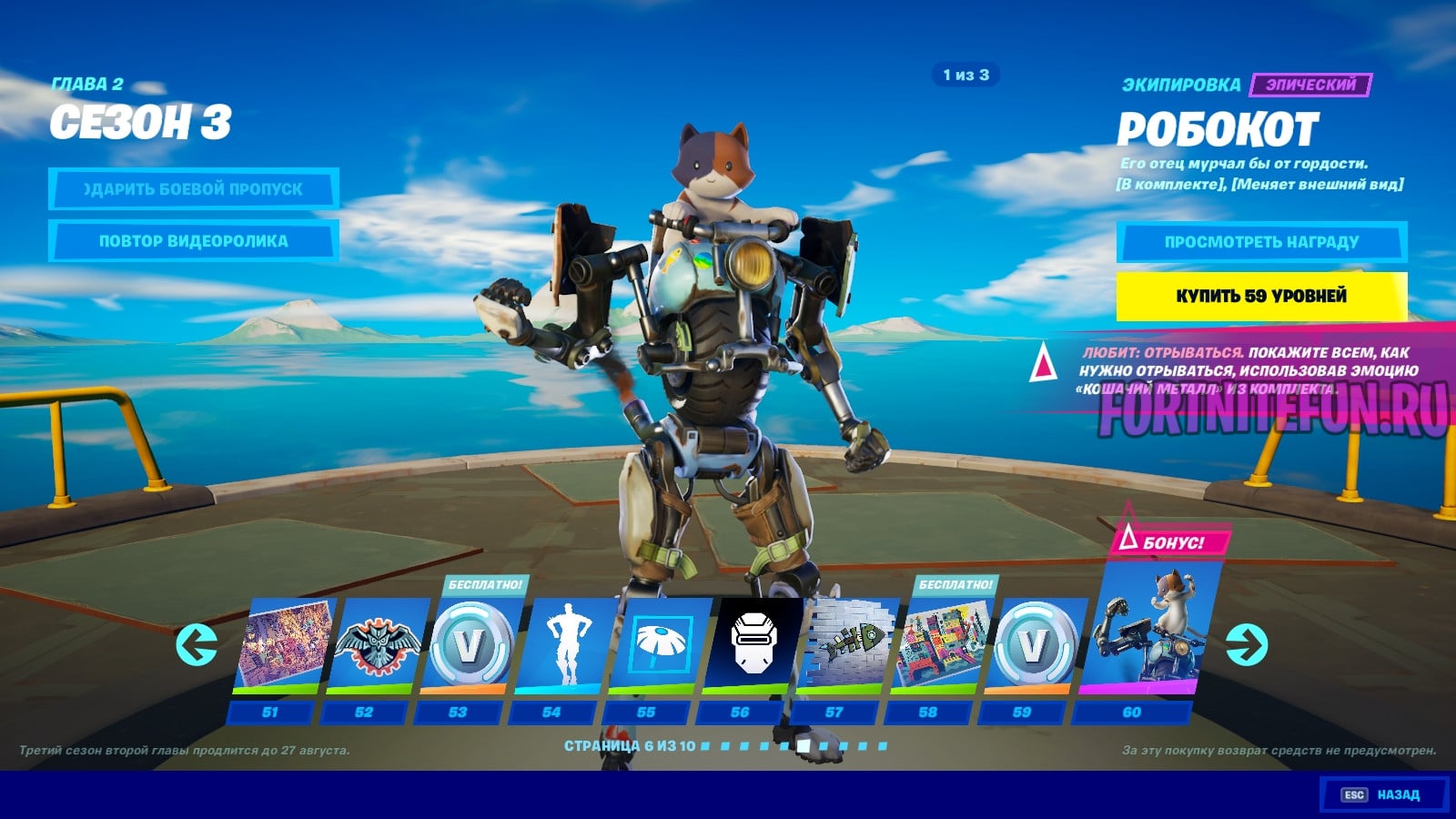 На данных уровнях боевой пропуск 13 сезона предоставляет нам в-баксы и одну так или иначе ценную награду — скин «Робокот». Вообще, хочу сказать, что скины данного пропуска просто бомбические, не побоюсь этого слова. Они проработанные, хорошо выглядят, а главное — большинство скинов мы не видели ранее. Конечно, это мало относится к данной прокрутке, но мысль мою вы поняли.