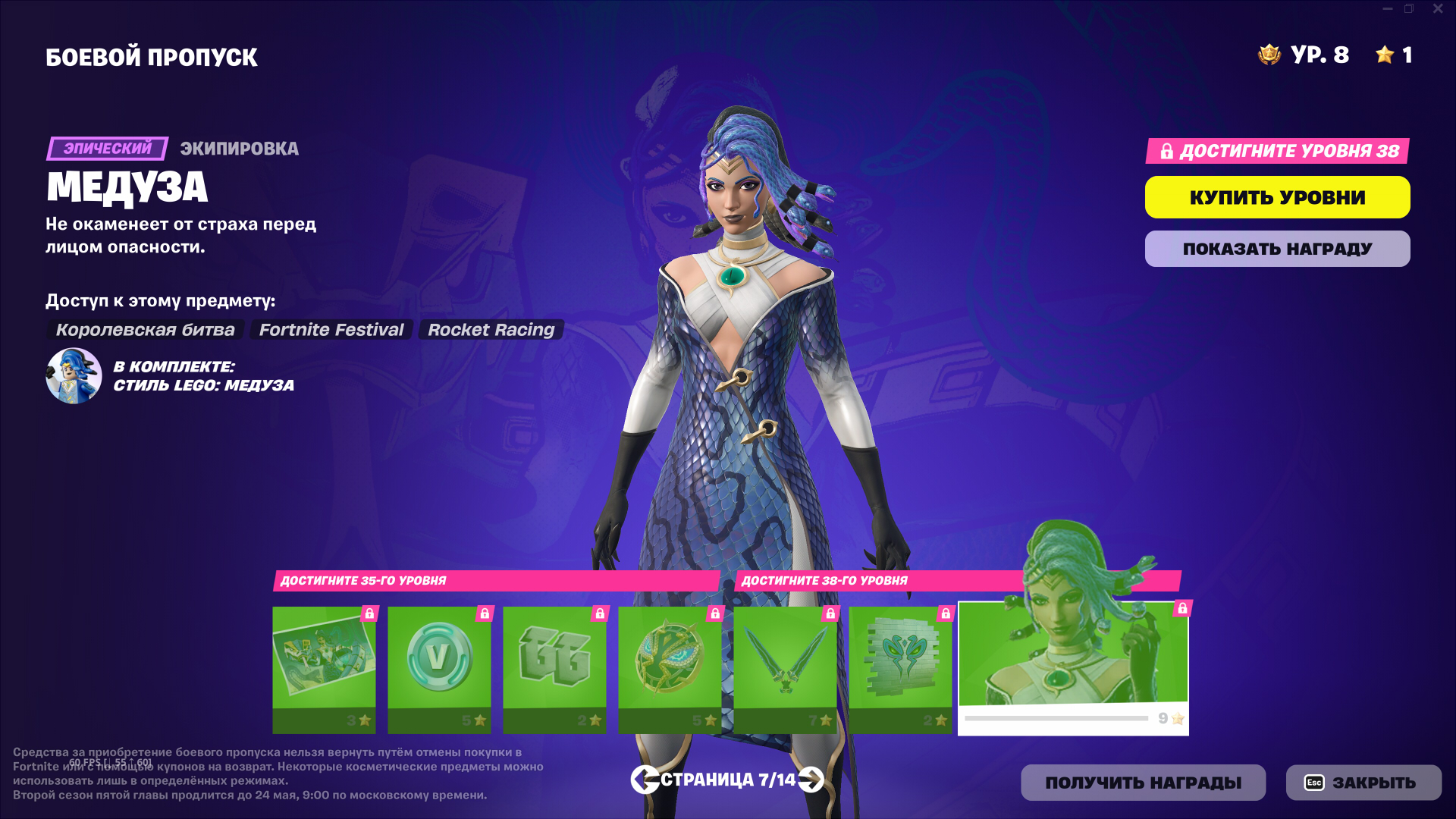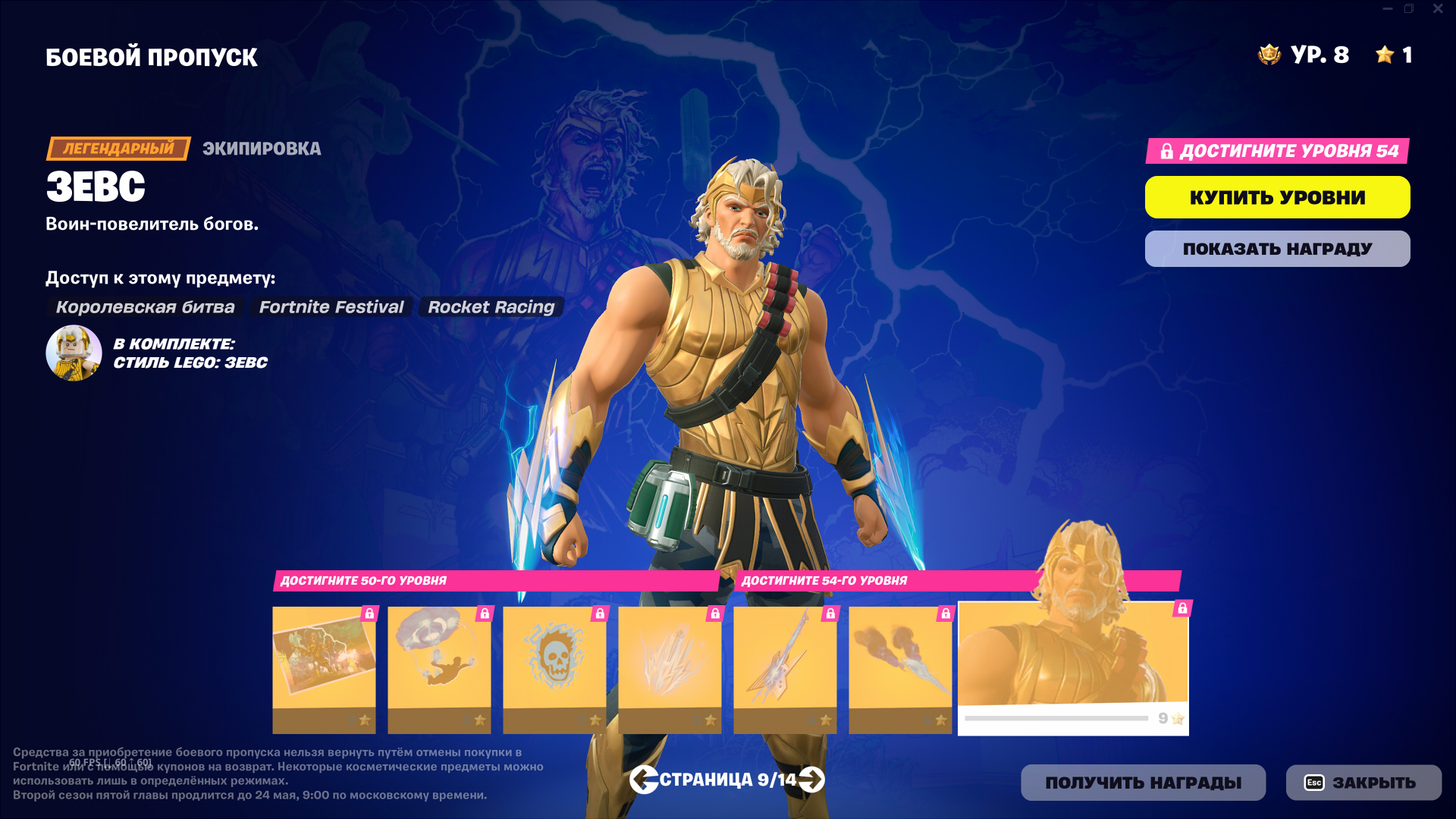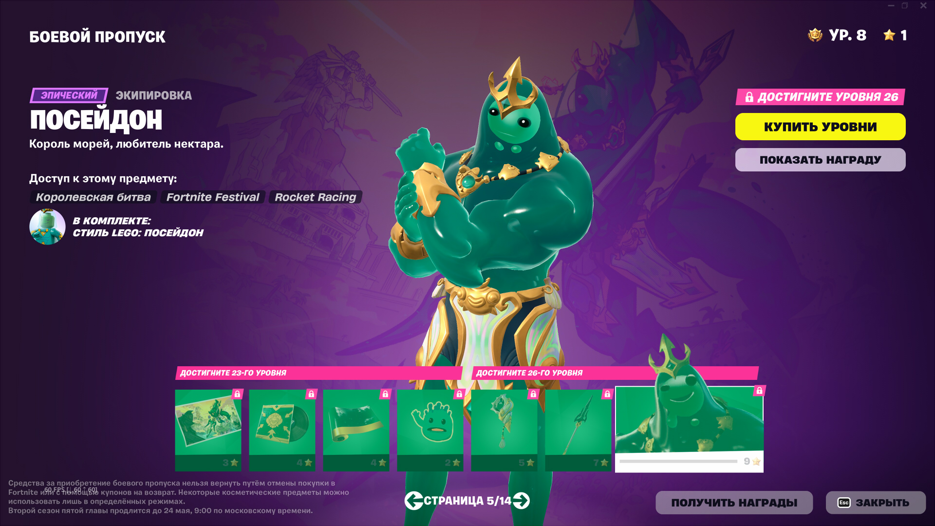 Награды в боевом пропуске 2 сезона 5 главы разнообразны и посвящены мифами Древней Греции. На этот раз в БП не будет скинов и прочего на автомобили, что не может не радовать.