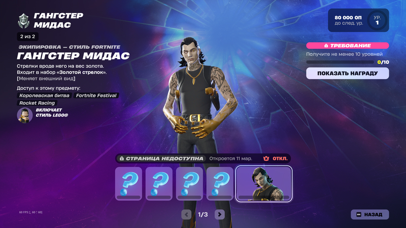 Во 2 сезон 6 главы секретным скином стал Гангстер Мидас. Желанный для многих скин оказался так далеко… Мидас станет доступен для получения только с 11 марта.