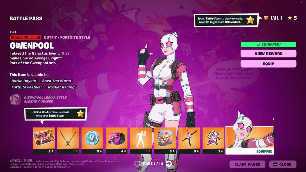 Награды боевого пропуска 4 сезона 5 главы полностью посвящены тематике Marvel.