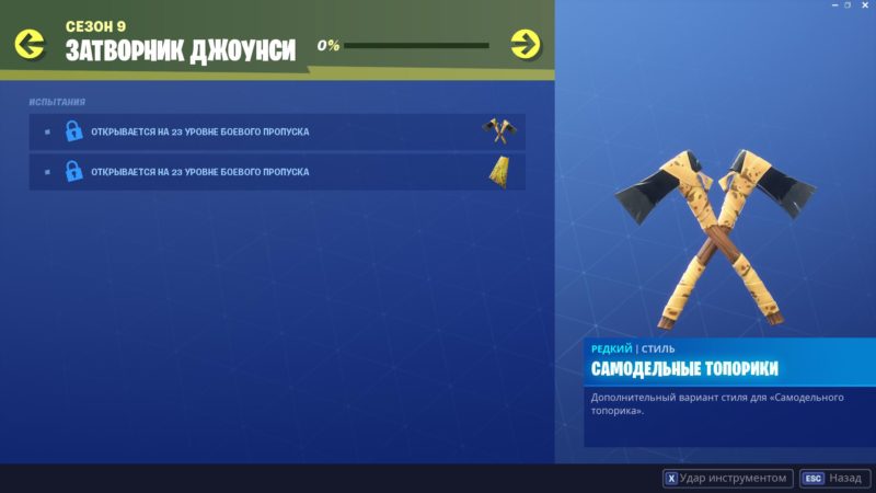 Также, к скину идут испытания, за прохождение которых Вы можете получить Банановый плащ и дополнительный стиль для самодельного топорика: