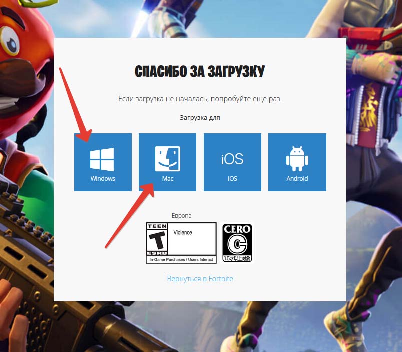 4. Сайт автоматически определит с какого устройства вы сидите (Windows/Mac) и начнётся скачивание лаунчера Epic Games. Если автоматическая закачка не началась, то нажмите на кнопку, которая соответствует вашей операционной системе.