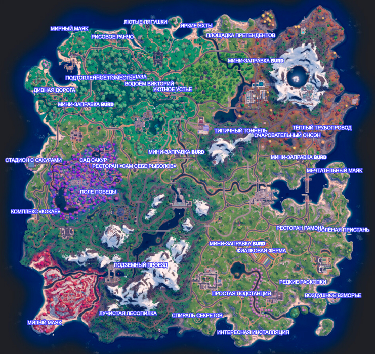 В этом задании необходимо отыграть 4 матча, в каждом из которых посетить хотя бы одну достопримечательность. Все достопримечательности указаны на карте.