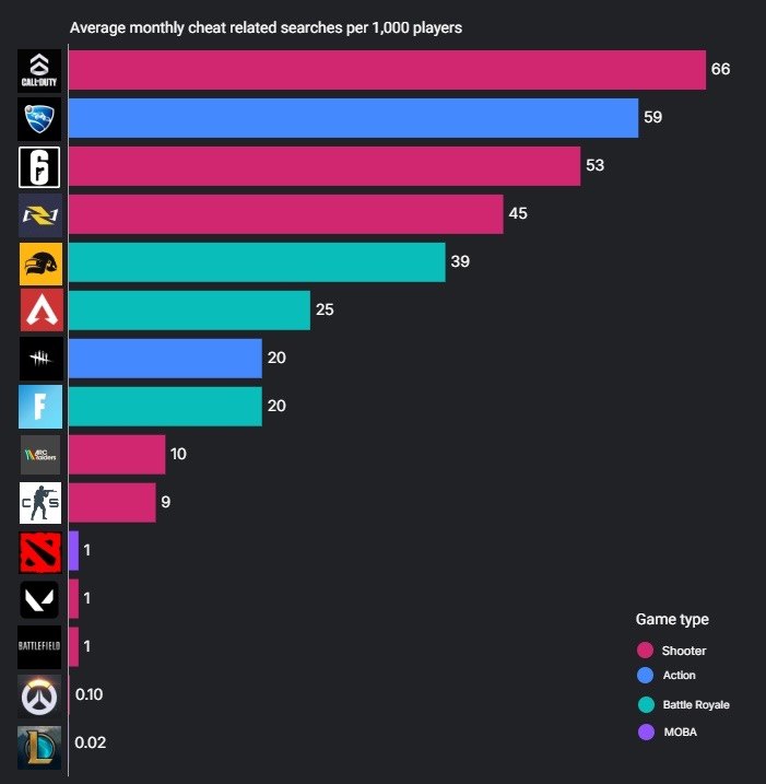 Почему Fortnite так низко? Аналитики Surfshark предполагают, что это прямое следствие использования мощных античитов уровня ядра (kernel-level). Такие системы, как EasyAntiCheat и Battle Eye, которые уже давно работают в Fortnite, отпугивают потенциальных читеров, так как их намного сложнее обойти.