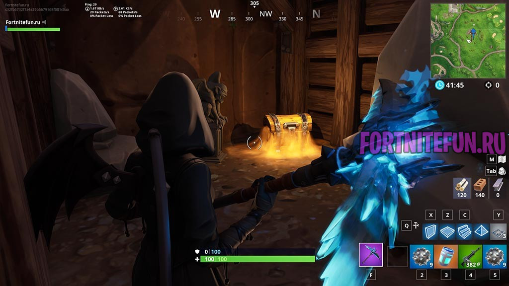 Данное задание выполняется одновременно с первым. Здесь Вам необходимо найти любое оружие, подойти к кубу в Зловещей области и настрелять 5 000 урона по зомби.