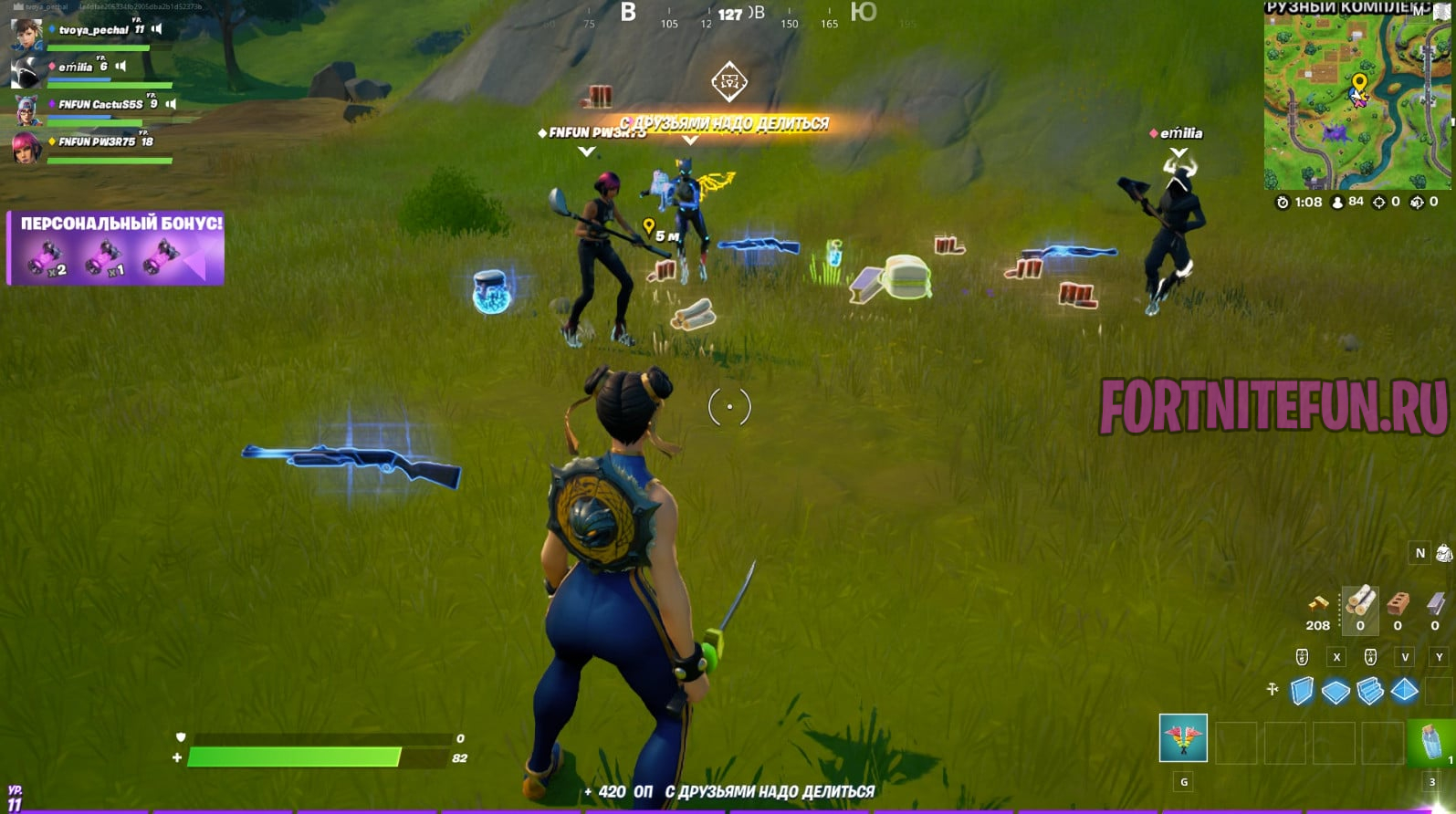 А теперь к самому важному — к наградам. Существуют общие награды и персональные. Общие награды выпадают из сундука на землю и ими могут стать дробовики, пистолеты, пп, автоматы или снайперсккие винтовки с патронами. Также сундук дает ресурсы и хилки.