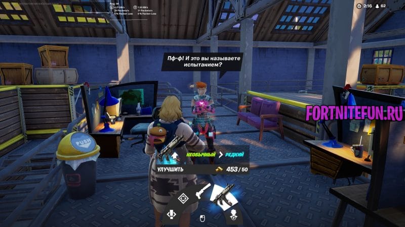 Перейдем к главному, а именно как улучшать оружие. Для успеха нужны три составляющих: персонаж, который улучшит вашу пушку, золотые слитки и непосредственно оружие для прокачки. Подходите к персонажу, предварительно выбрав необходимое вам оружие, нажимайте кнопку взаимодействия, выбирайте улучшение и подтверждайте его.