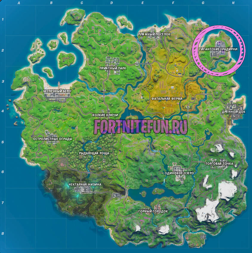 Гигантские градирни (Steamy stacks) — локация на новой карте фортнайт, появившаяся в Королевской битве после обновления 1 сезона 2 главы. Обнаружить градирни можно на стыке клеток G2 — H2; на севере от Дрянных доков и на западе от Пляжного поселка.