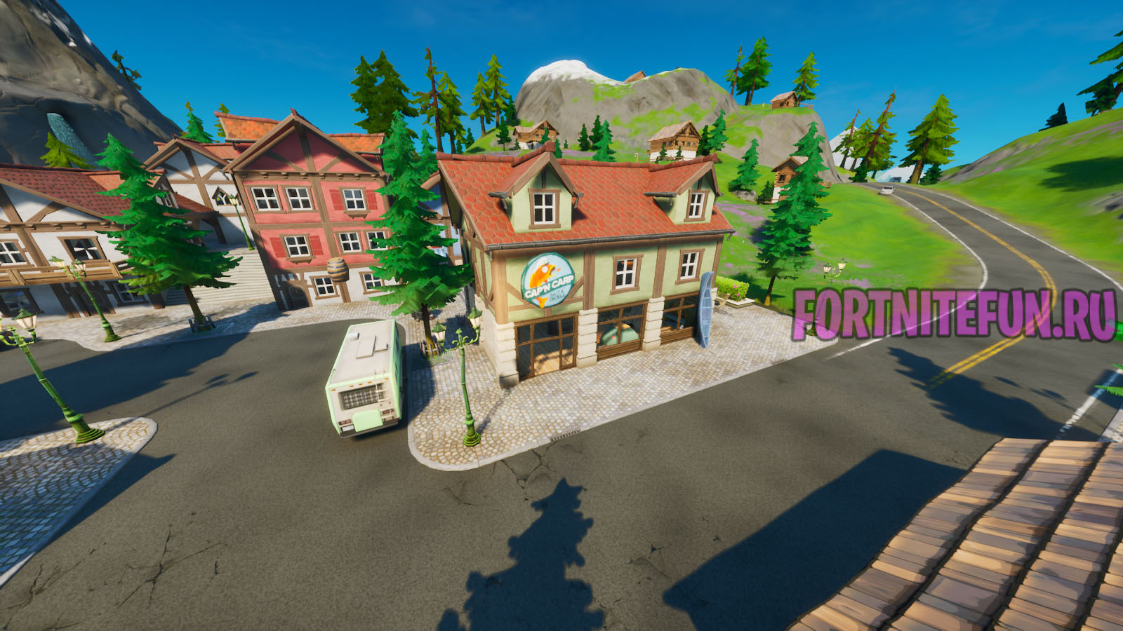 Горный Городок (Misty Meadows) - локация фортнайтГорный городок (Misty Meadows) — это локация 1 сезона 2 главы фортнайт. Она располагается в координатах E7, 8 — F7, 8, на юго-западе от Одинокого озера и на юго-западе от Нектарной низины. Самый юг карты теперь захватили снежные вершины и малые реки.