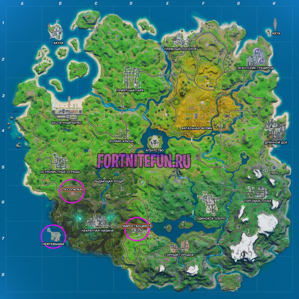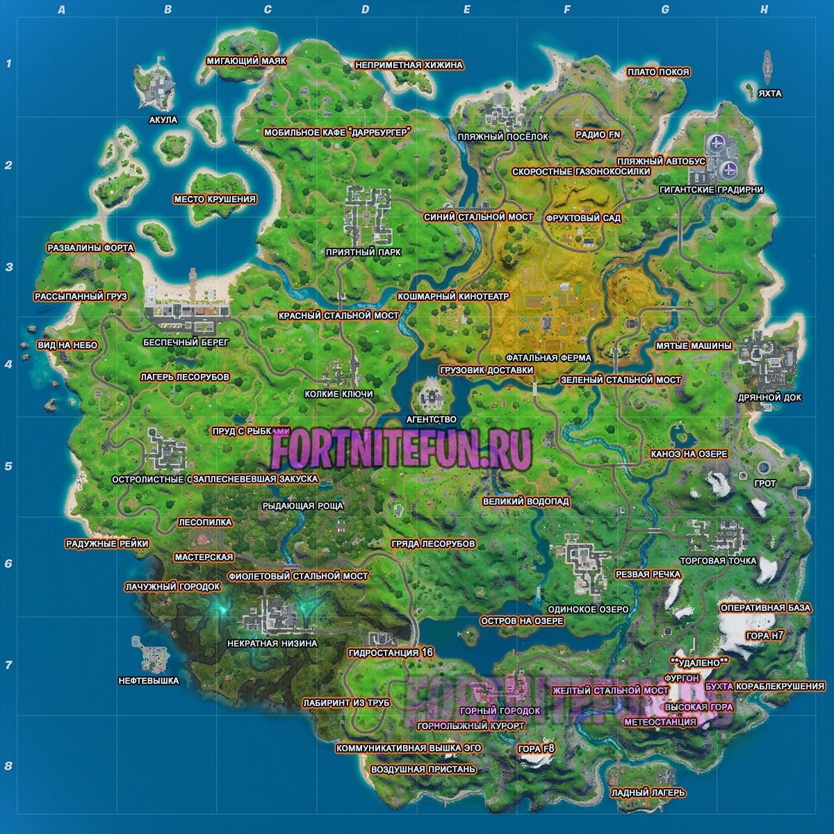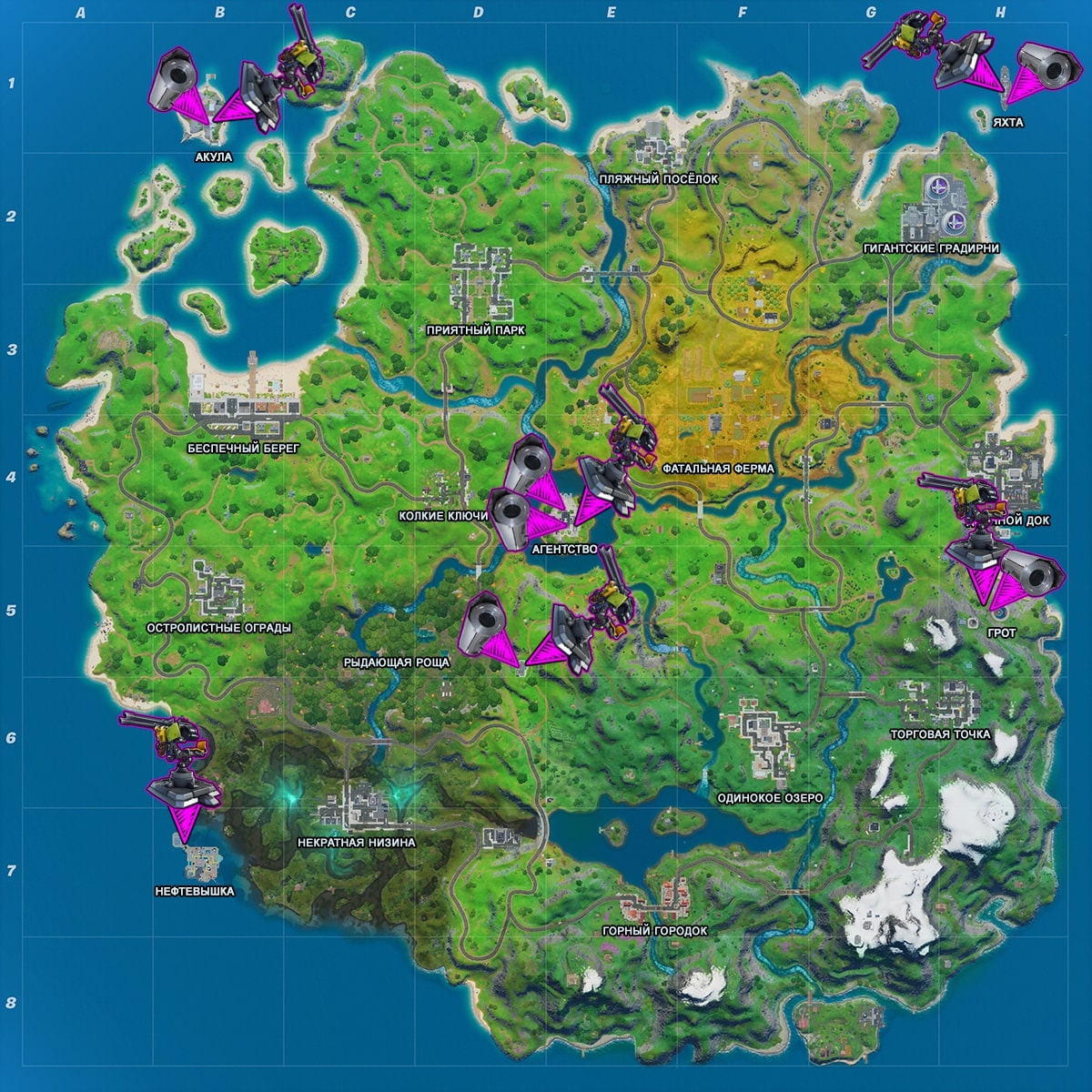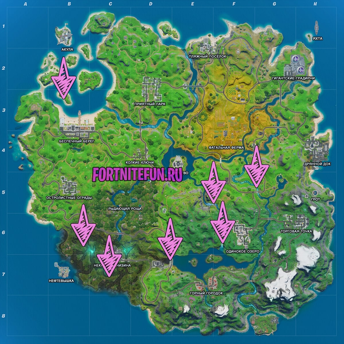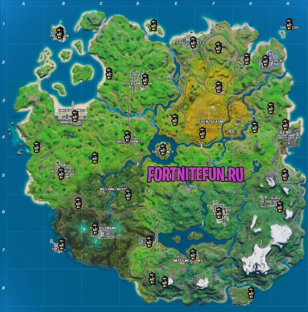 Карта достопримечательностей фортнайт: