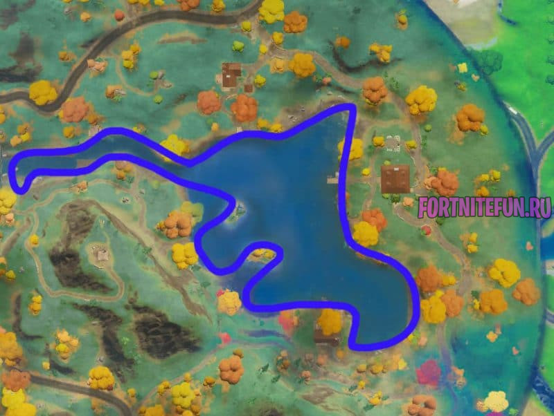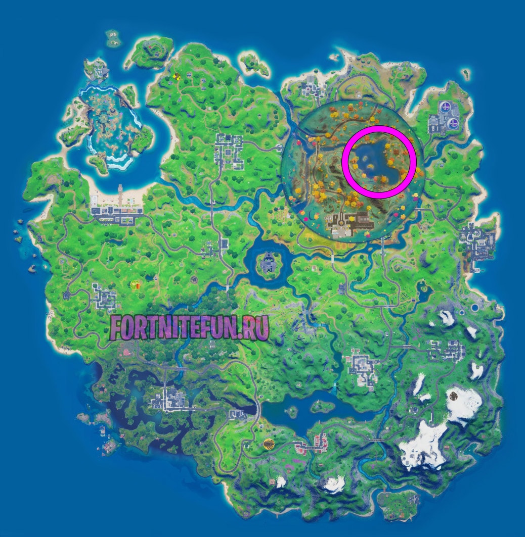 Для выполнения данного задания необходимо приземлиться в самый опасный район карты фортнайт — Одинокое озеро. Лучше всего выбрать режим «командная потасовка» и ждать, когда зона будет в данной локации, ведь тогда вы будете иметь много возможностей пройти данное задание за раз, ведь вы будете возрождаться. Однако данный способ подойдёт именно новичкам, хорошим игрокам лучше выполнять данное задание в классических режимах.