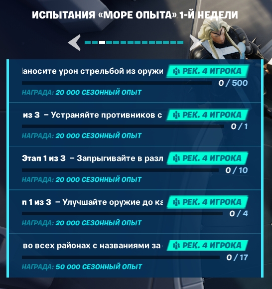 Испытания 11 недели 14 сезона фортнайт «Море опыта» всех удивили своим присутствием. Однако самими миссиями, после 10 недель мучений и путешествий, не удивили, — в их списке нет ни одного сложного задания для бывалого игрока, а потому прохождение просто до безобразия.