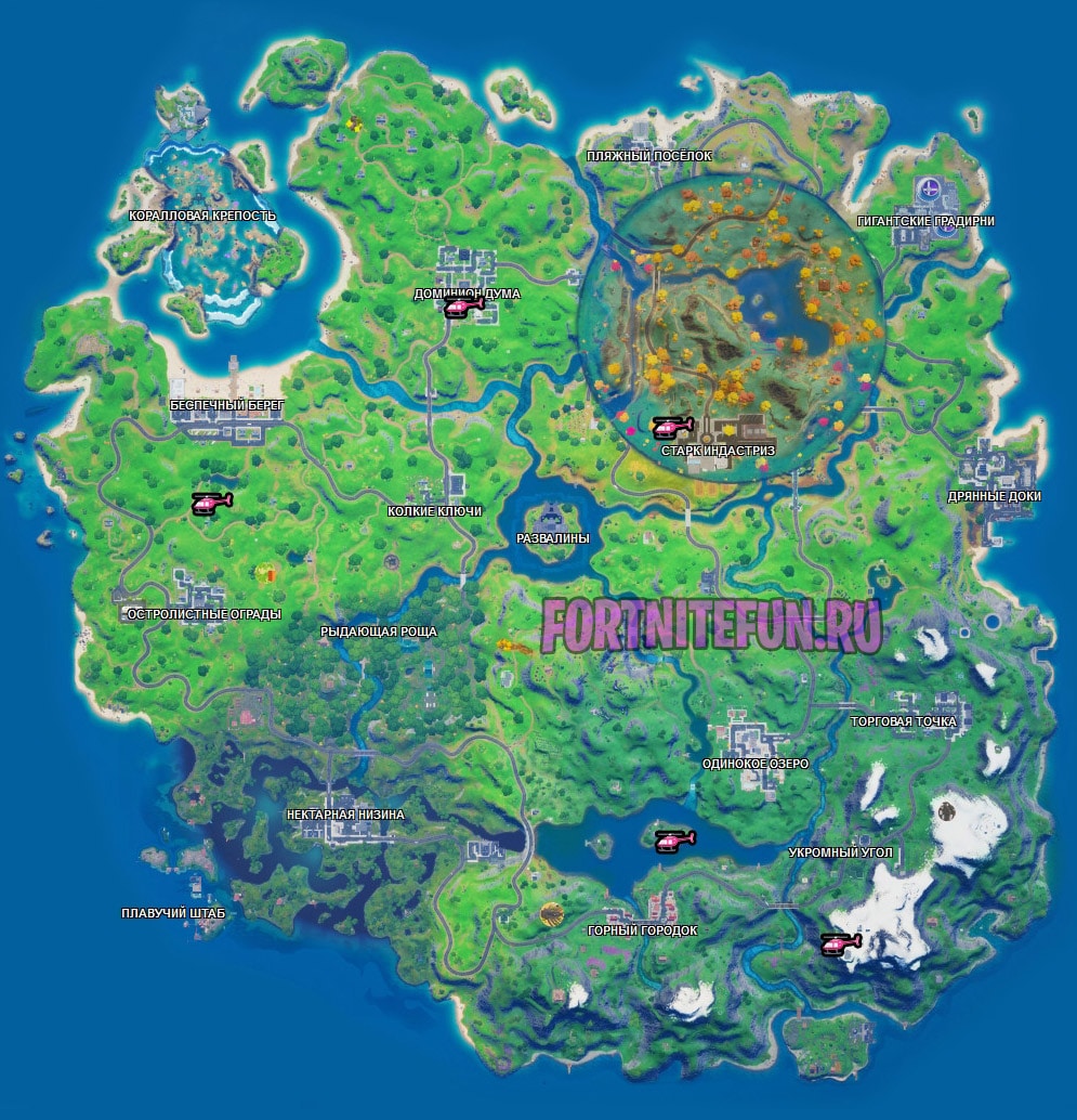 В данном задании необходимо посетить 17 локаций за 1 матч, поэтому главное, о чём нужно помнить — это транспорт. Приземляйтесь изначально в локации, где есть вертолеты и с помощью данного транспорта проезжайте все необходимые локации.