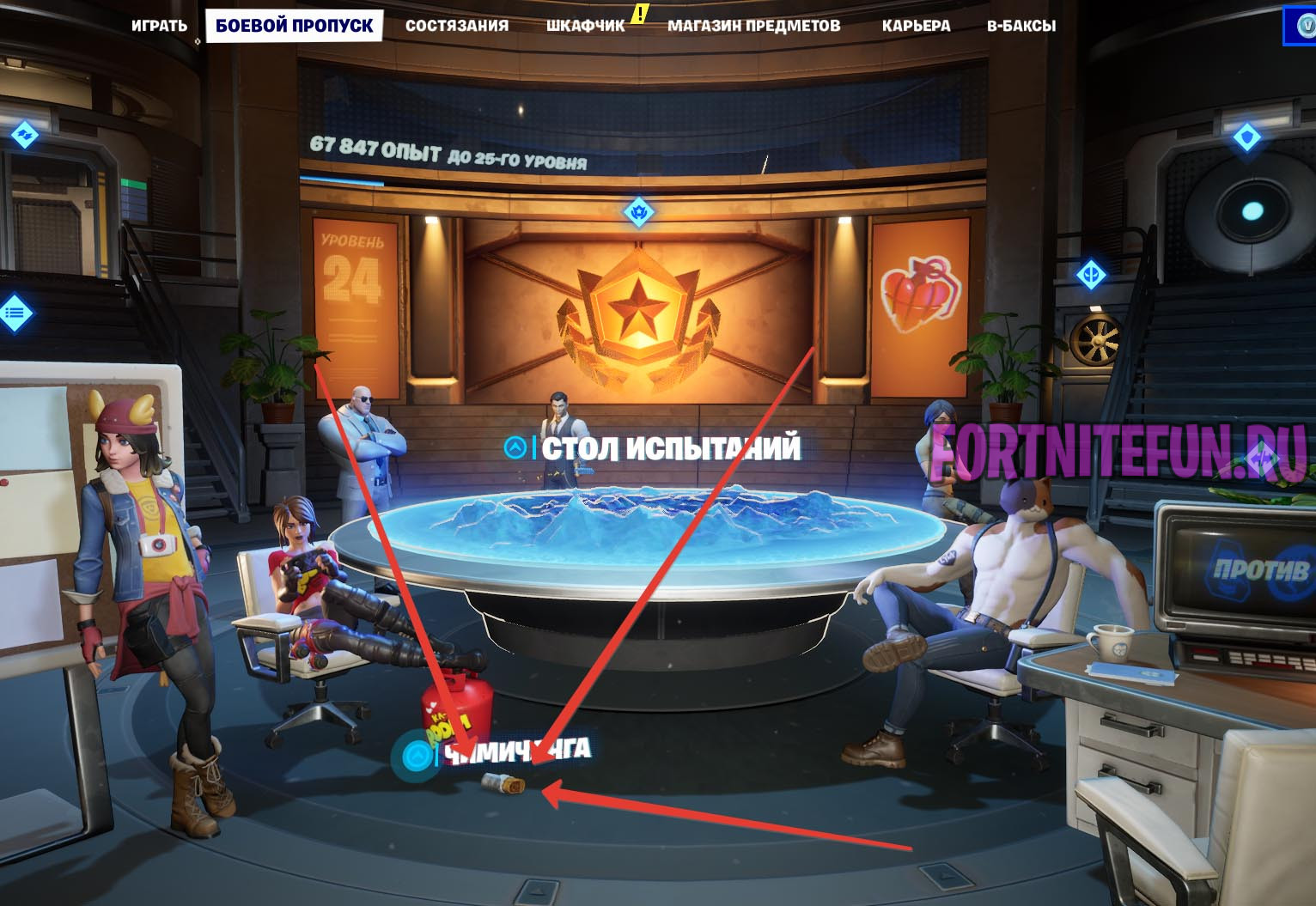 Третья, последняя закуска, уже точно фатальная для желудка, находится в кабинете «Агенты». Зайдите туда через вкладку «Боевой пропуск» и отправляйтесь к здоровяку. Оглянитесь и еда найдется.