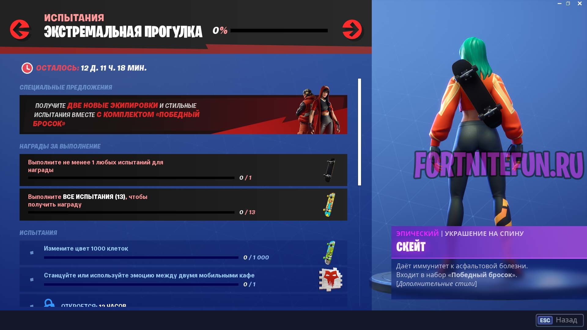За выполнение любого из испытаний вы получите скейт, а за выполнение всех испытаний раскраску «Качок» (со скином Карась) для данного скейта.