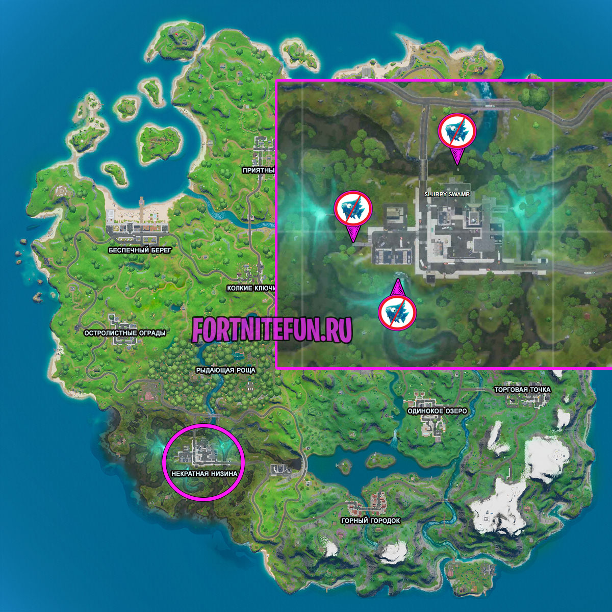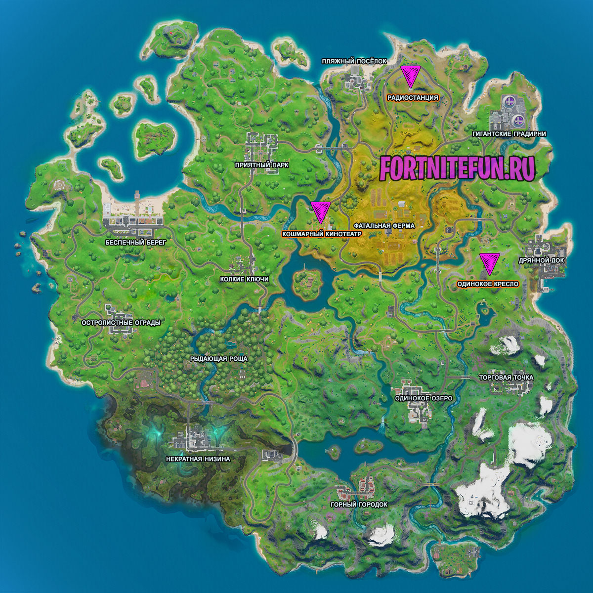 Карта телескопов фортнайт (Одинокое озеро):
