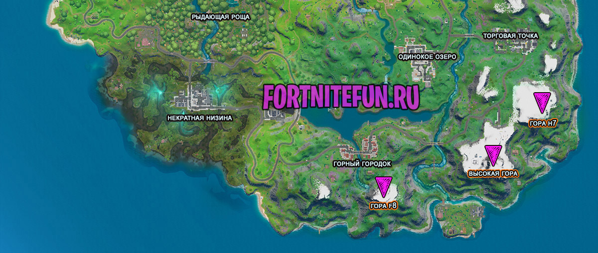 Если вы в командной потасовке, а именно там мы рекомендуем проходить задание, то у вас всегда есть дельтаплан и летим на нем с самой высокой вершины на гору f8. Опять же смотрите карту, чтобы не запутаться. А после посещения 3 вершин задание будет завершено.