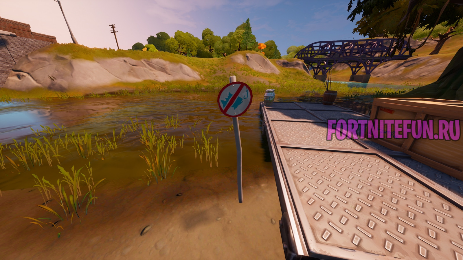 Одинокое озеро — это всем известная локация фортнайт (одна из самых популярных, кстати). Около данного городка есть река и именно в ней нужно поймать одну рыбку.