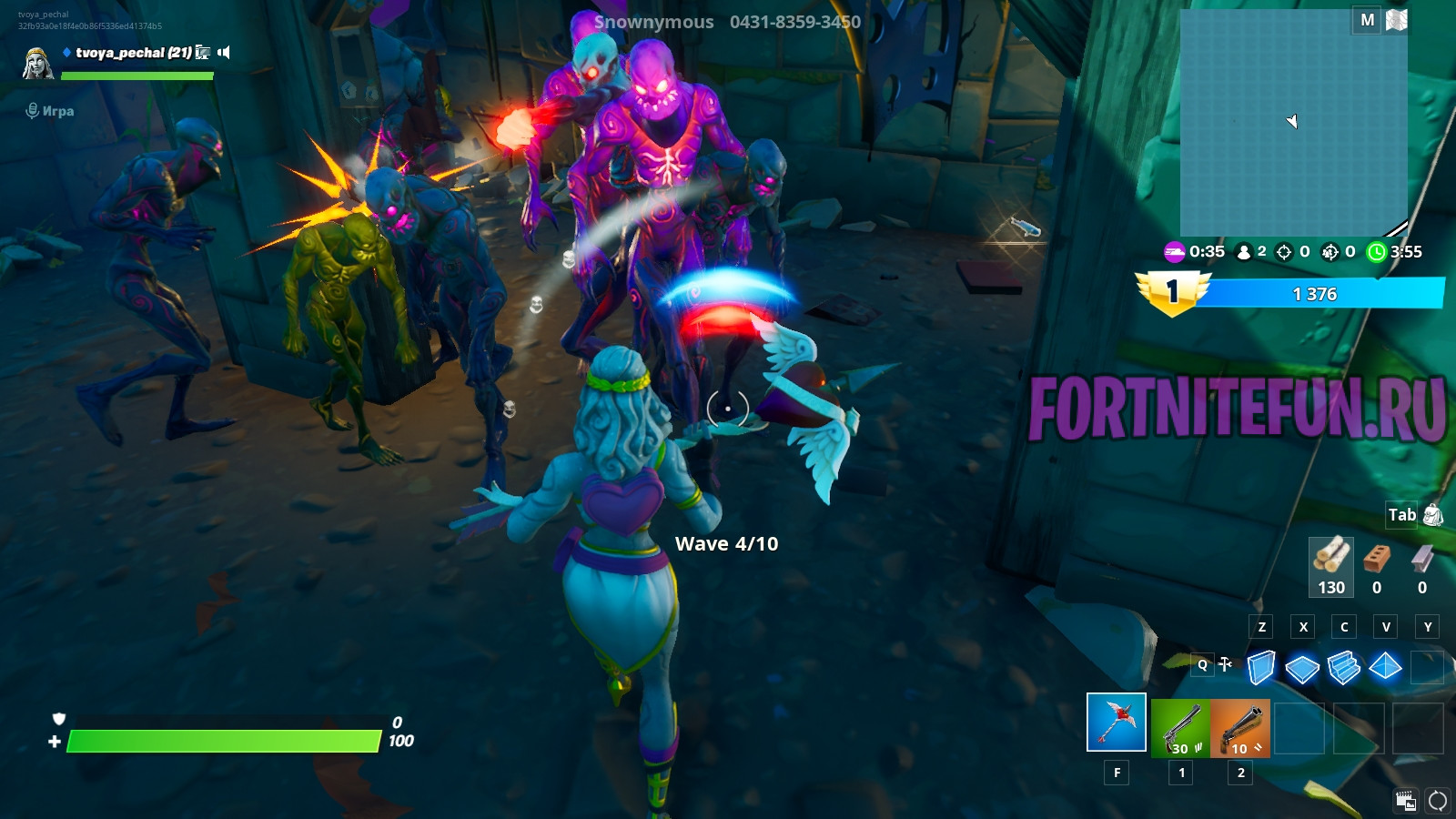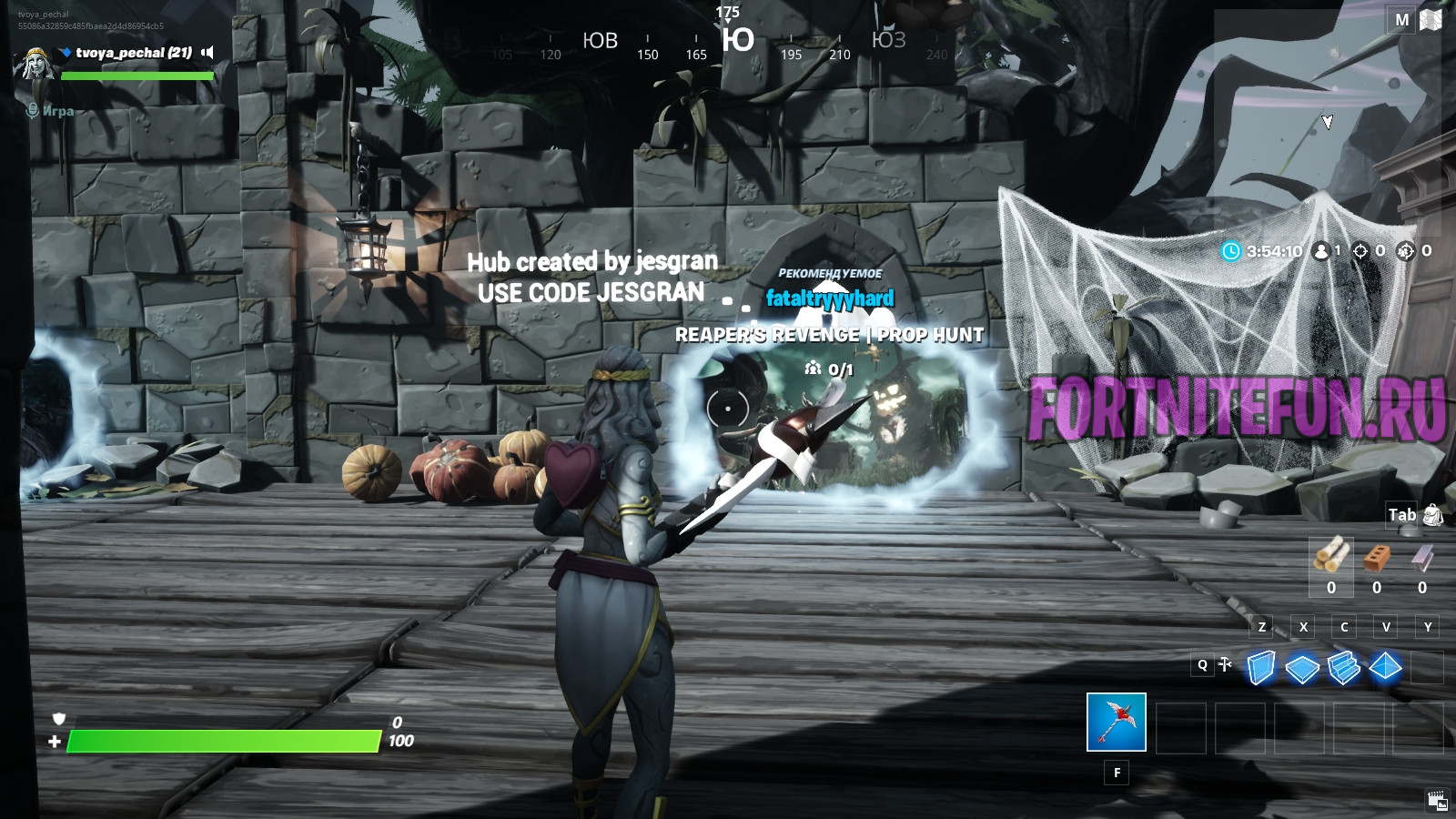 Кошмарики – это зомби, которых вы так любите и которые уже не в первый раз появляются в фортнайт. Лучшим режимом для убийства этих тварей будет временный режим «Возмездие», который вы можете найти в творческом лобби. Просто заходим в портал и нажимаем «Е» (чтобы начать игру, после этого толпы зомби двинутся к Вам, и миссия пройдётся сама собой.
