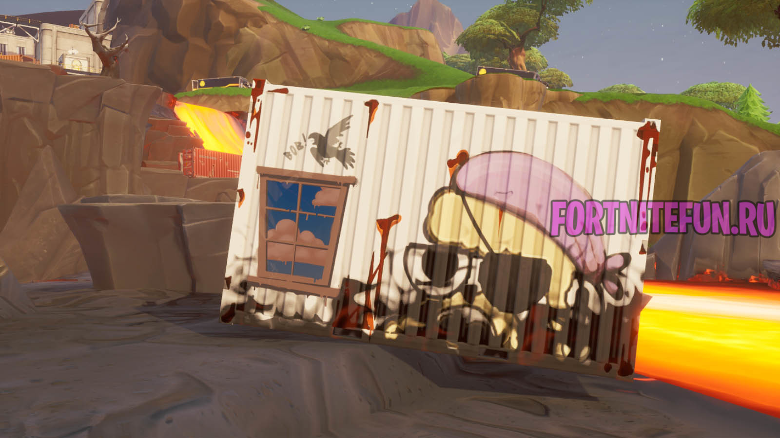 «Контейнеры с окнами» — название весьма условное, ведь окна на контейнерах нарисованные, а не реальные! Причем данное граффити появляется и исчезает на определенном расстоянии. Поэтому если издалека окно на контейнере не видно — не расстраивайтесь, подлетите поближе и оно появится.