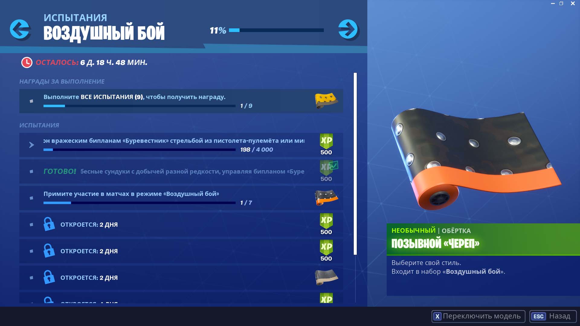 С патчем 8.40 в игре добавили новый режим «Воздушный бой». Вместе с режимом была добавлена серия испытаний, которая выполняется только в режиме «Воздушный бой». Суммарно за выполнение всех испытаний можно получить 4 обертки.