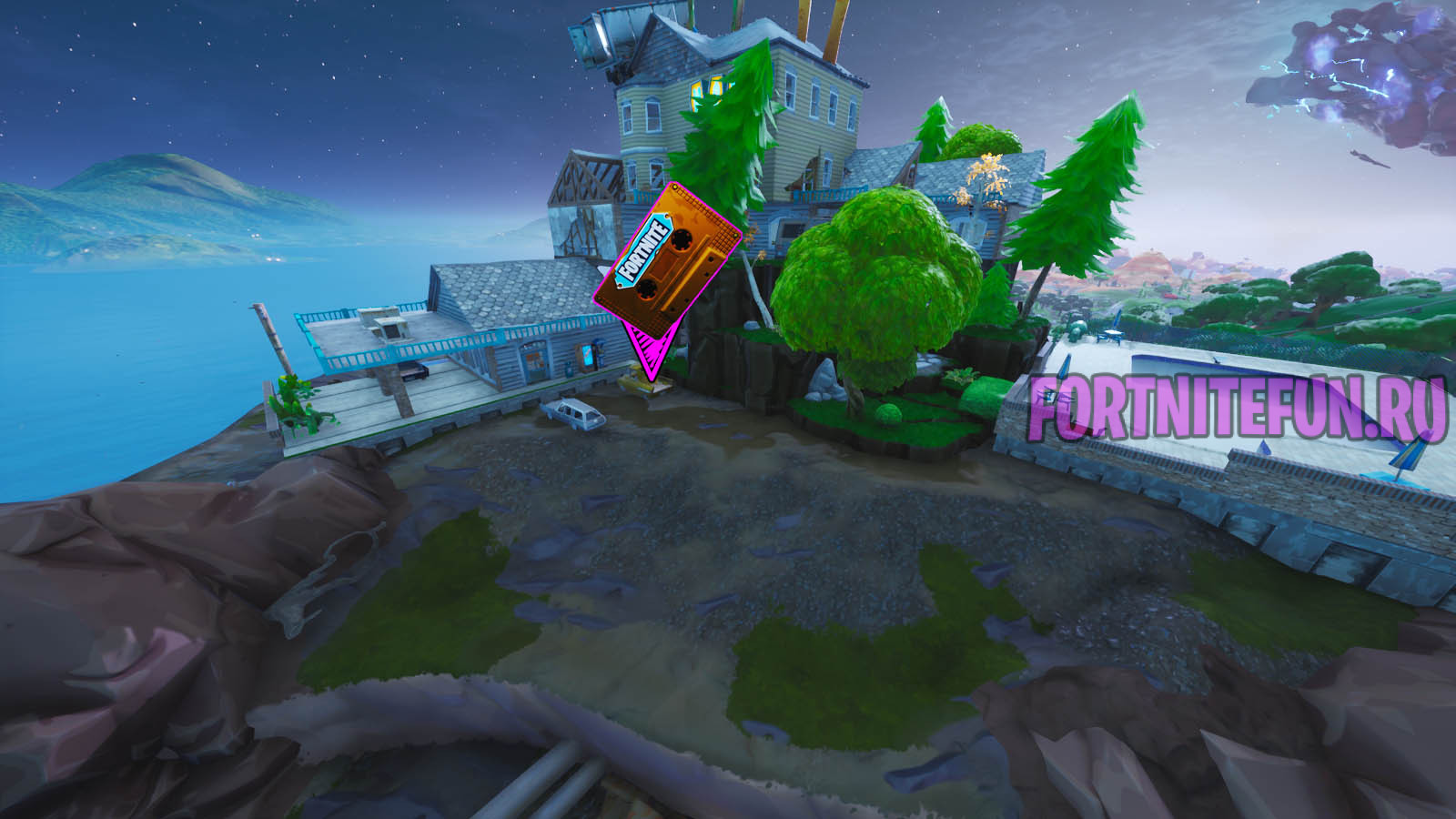 Записи Пришельца — это желтые кассеты с надписью «Fortnite». Чтобы «найти» данные предметы, обыскивайте их, нажимая «Е», поскольку просто постоять с ними Вы и случайно можете.