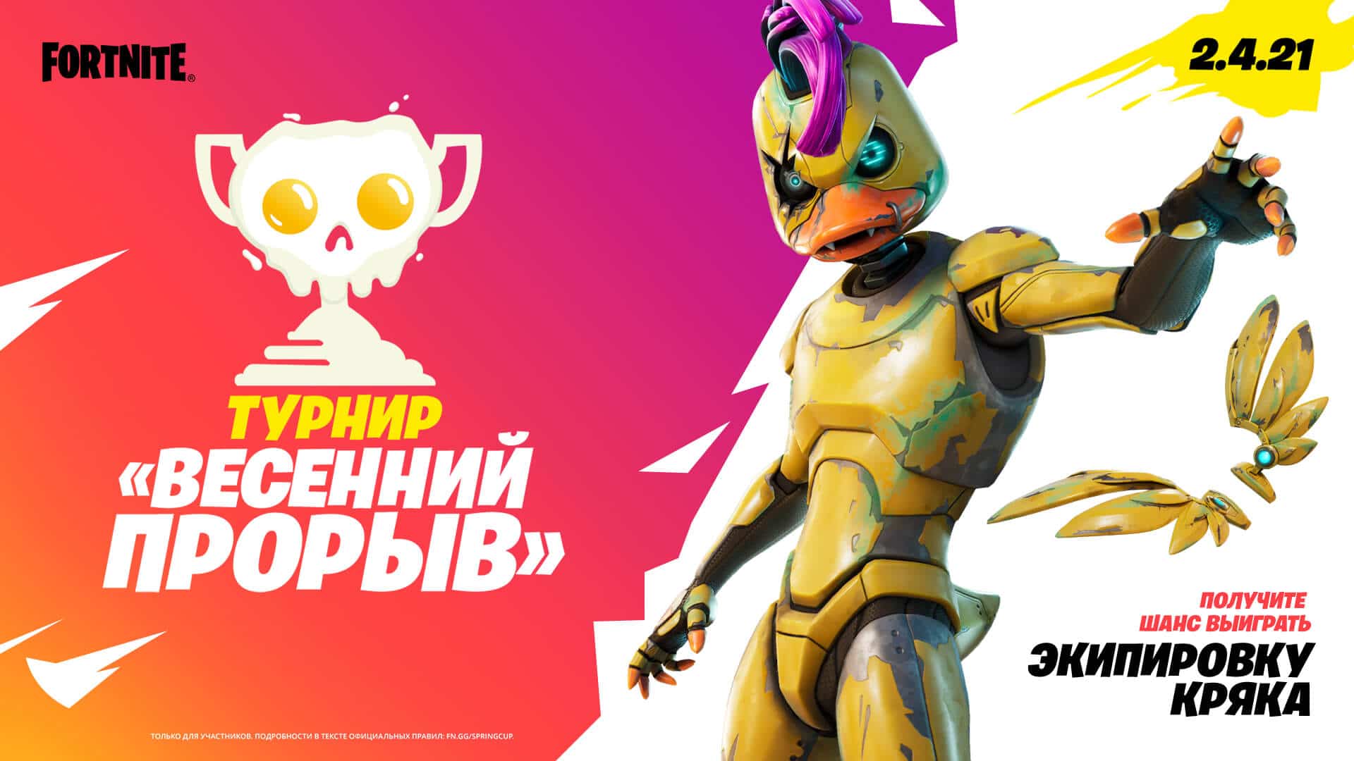 Теперь о турнире, информация о котором появилась на сайте Epic Games. В пятницу, 2 апреля, Пятничную битву за престиж заменит турнир «Весенний прорыв» в формате парных сражений.