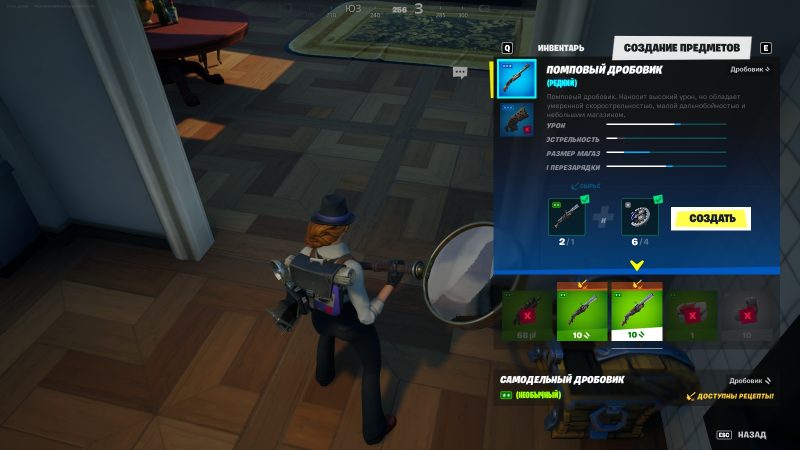 После этого зайдите в инвентарь, перейдите на вкладку создание предметов и выберите не доисторическое оружие в вашем инвентаре. Если у Вас достаточно запчастей, то вы сможете скрафтить новое оружие из оружия серого качества. Сделайте так с 3 обычными пушками и задание будет выполнено.