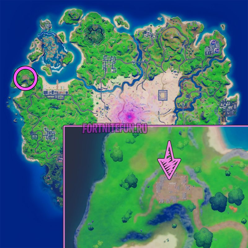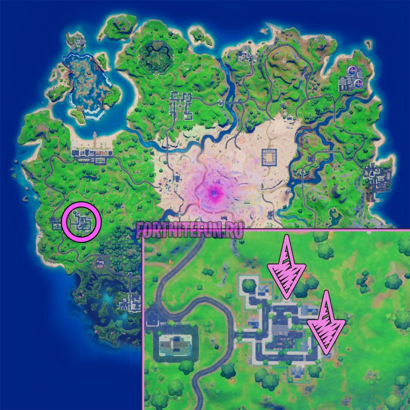 Для выполнения данного задания необходимо приземлиться в 1 из 2 локаций — Стальную ферму или Фруктовый сад.
