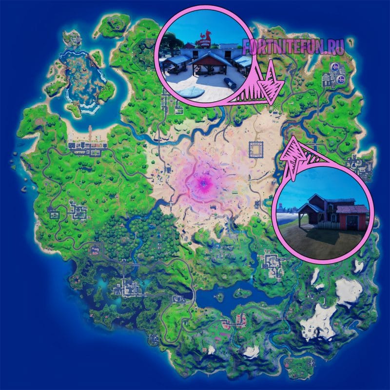 На карте Фортнайт достаточно различных ресторанов — их вы можете найти чуть ниже. Просто прилетите в любую из точек, отмеченных на карте, найдите столик и активируйте его и задание будет завершено.