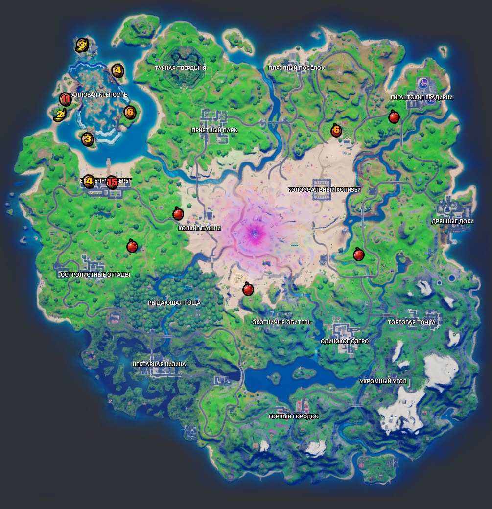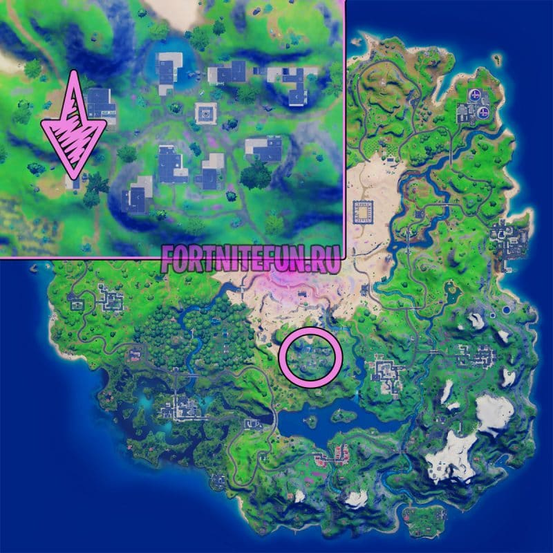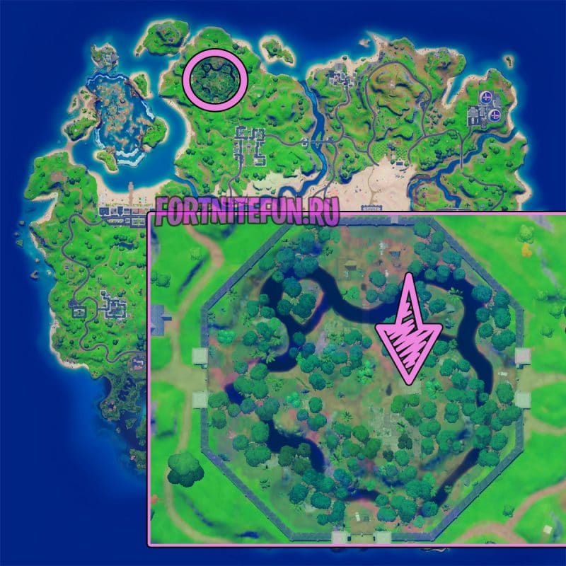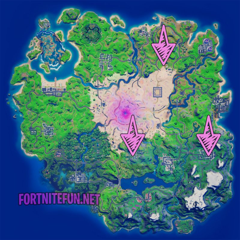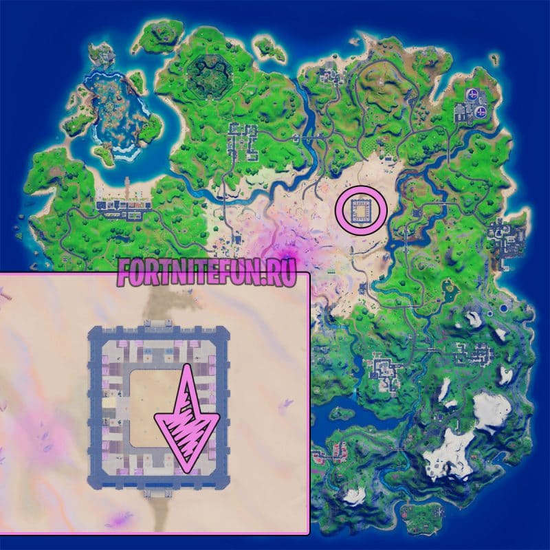Но мы не Джоунси, и нам Эпицентр не противопоказан. А потому собираемся в самый центр карты фортнайт — в огромную розово-фиолетовую сферу, которая поглощает все, что к ней приближается. Это нам и надо сделать — просто залетите в шар, он вас выплюнет и испытание завершено.