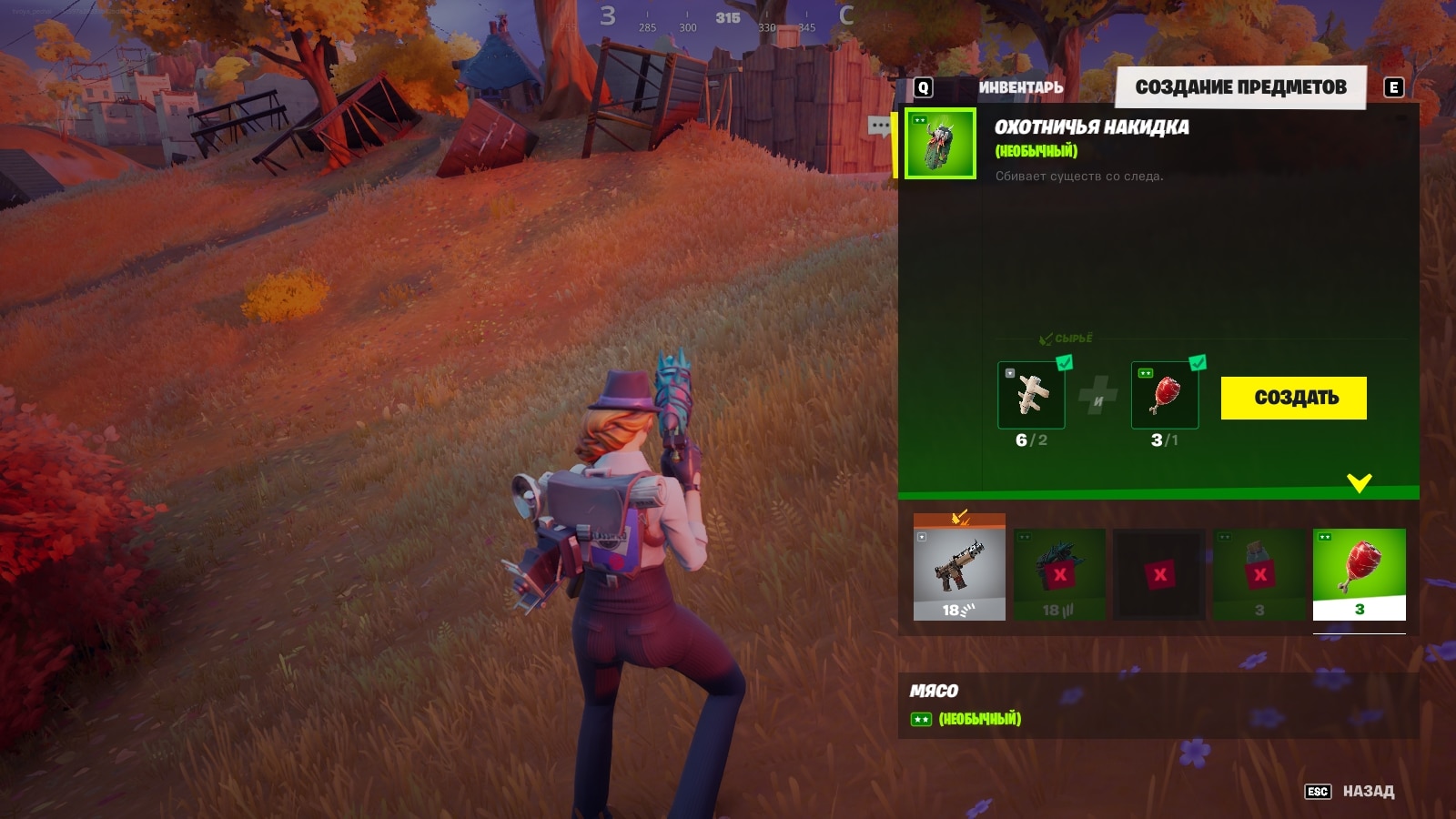 Если вы желаете приручить животное с помощью охотничьей накидки, вам придется сделать этот предмет. Крафт требует 2 косточки и 1 кусок мяса, получить которые можно, убив, например, кабана. После крафта надевайте накидку, подходите к животному, нажимайте кнопку взаимодействия и приручайте зверя.