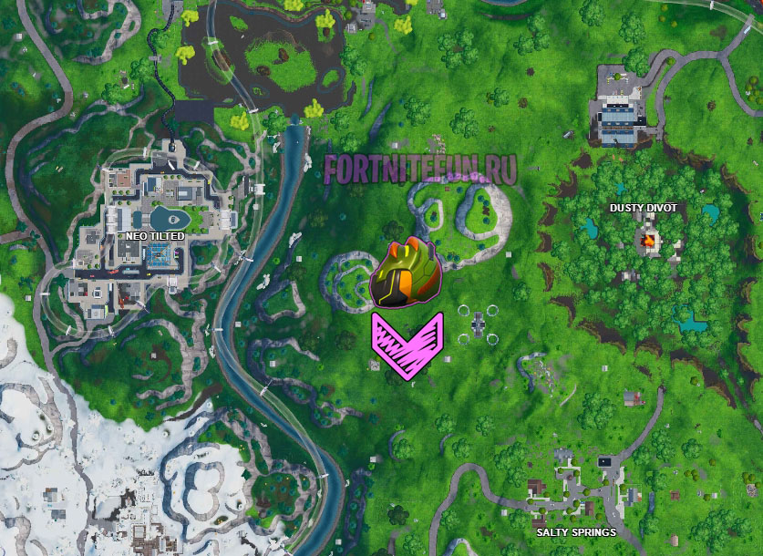 Пятый стиль скина запрятан на Подлом пруду, в центральной его части. На небольшом выступе и будет лежать маска, столь напоминающая стиль ресторана «Пицца Пит».