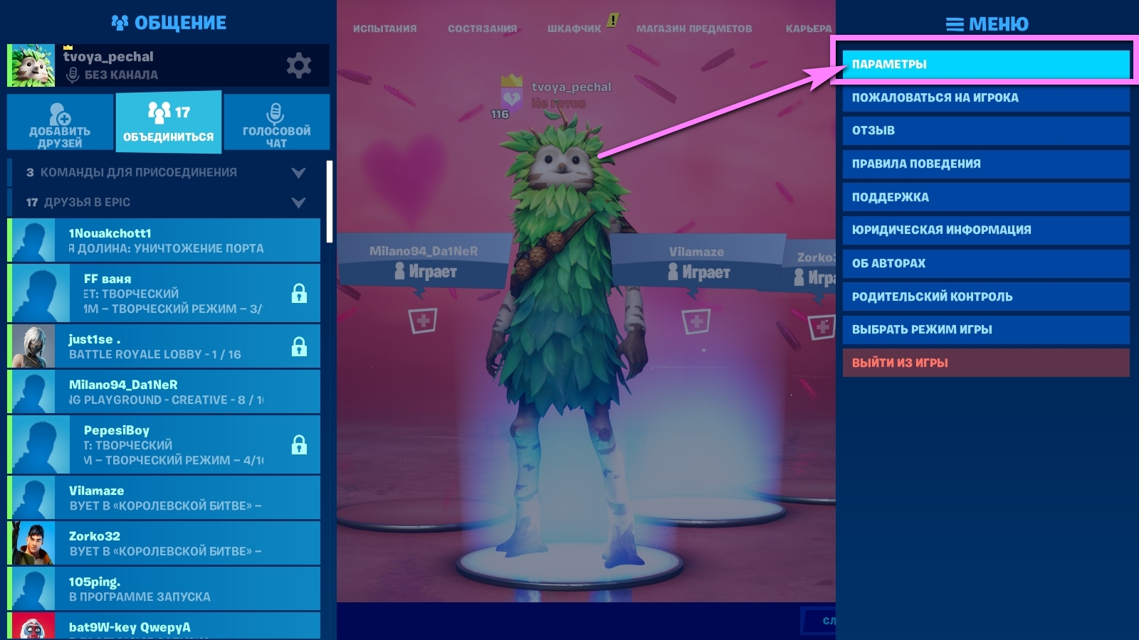 Как включить пинг в Фортнайт?