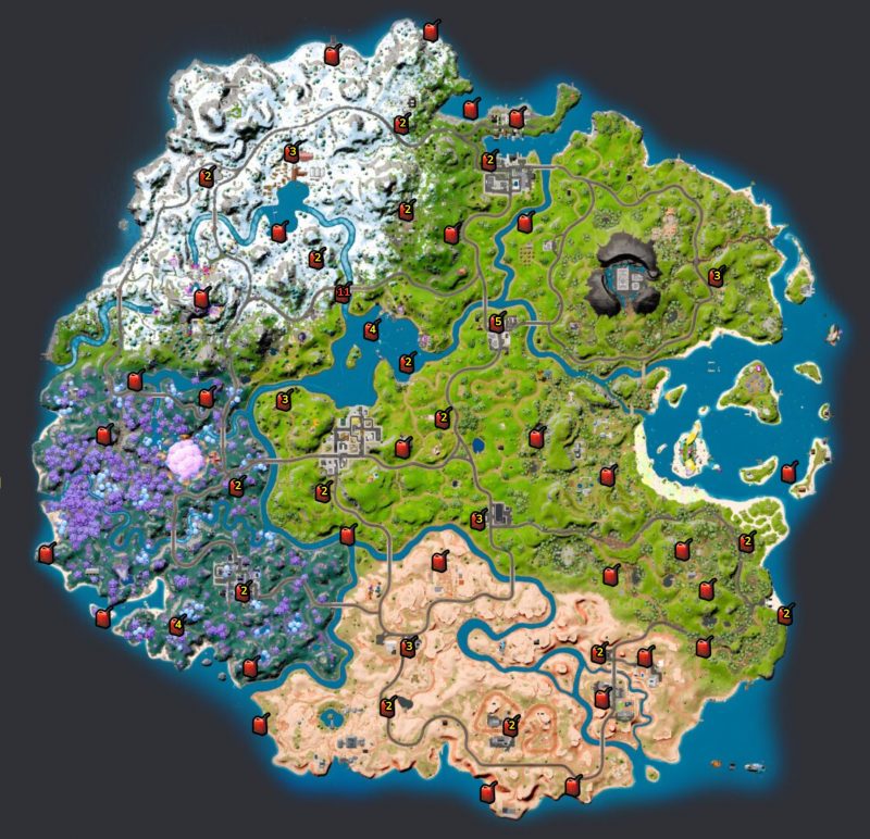 Удивительно, но канистра — один из самых распространенных по карте фортнайт предметов. Ее можно найти в 3 сезоне 3 главы фортнайт буквально везде — у заправок, у жилых домов, в городах и так далее. Разве что в поле канистру не найти…