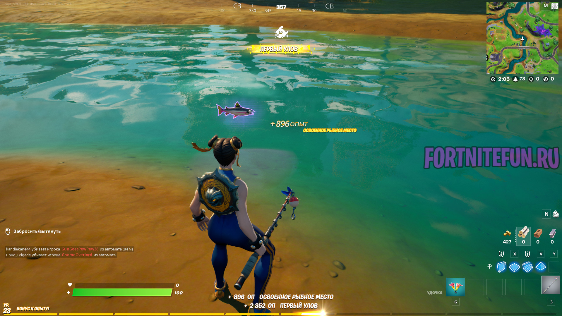 Рыбное место — это водоворот, что виднеется на поверхности воды. Они бывают как в море, так и в болоте, а потому особой разницы в биомах нет. Прилетайте в любую область с удочками, берите ее и бросайте во всплески воды.