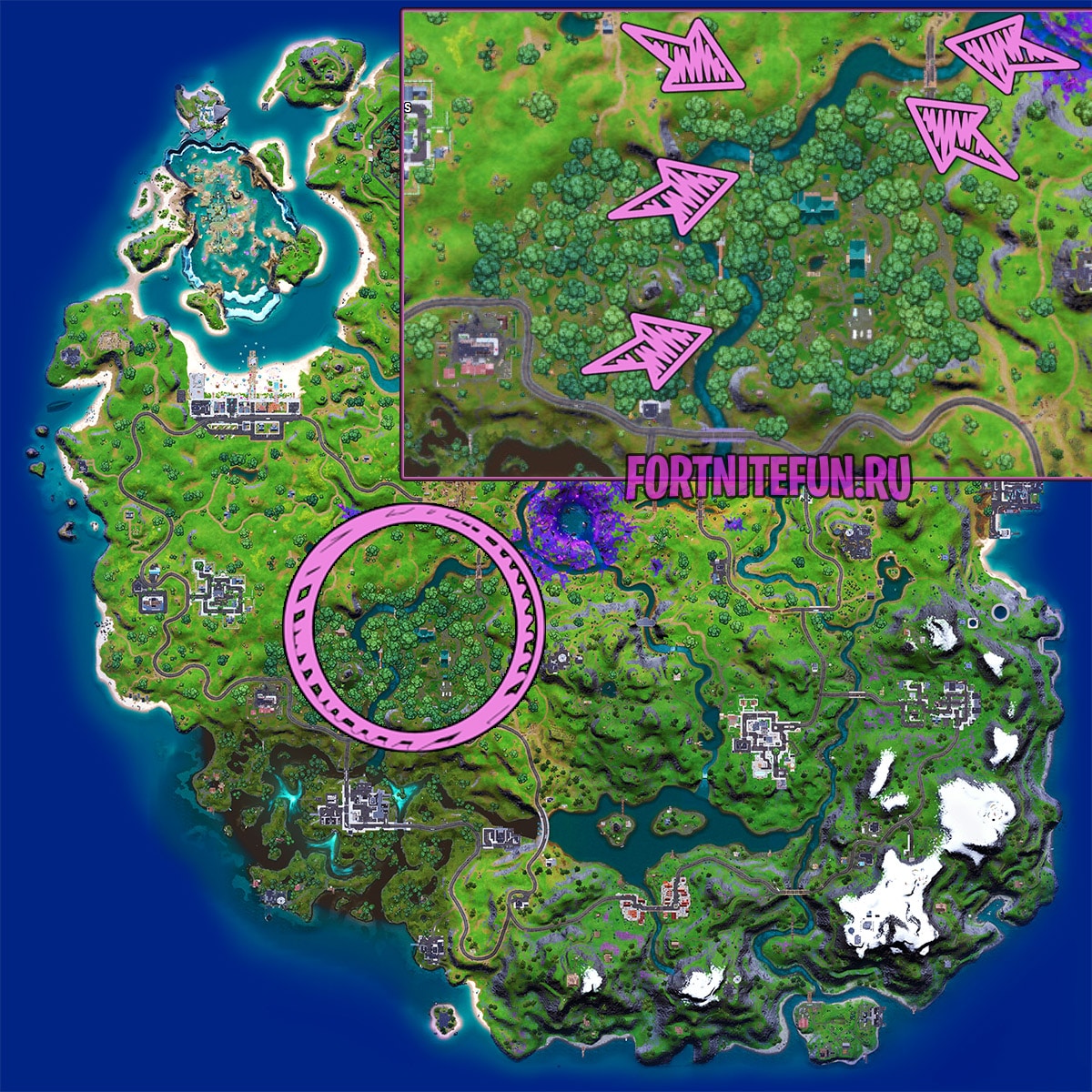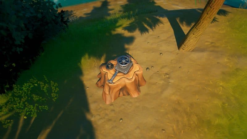 Тайников в 17 сезоне много, ведь к их числу можно отнести все новинки лута, которые произошли с началом этого сезона. Однако, в данном задании нам нужно искать не просто лут, а сейф, который спрятан в древесном огрызке, а именно — в пеньке. Таких тайников в Рыдающей роще очень много, но согласно заданию, вам достаточно найти и открыть лишь один. Как обычно, для выполнения вам потребуется кнопка взаимодействия и наша карта тайников.