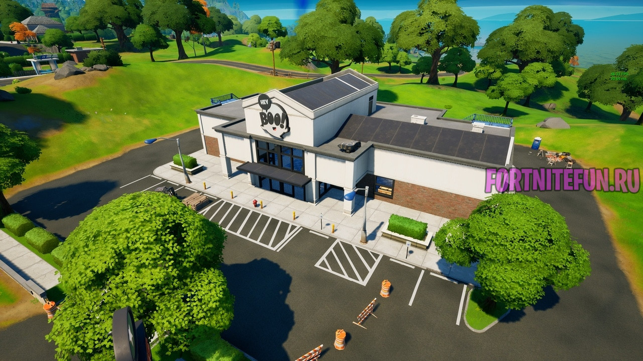 Новое необычное здание — магазин Буу — порадует вас своим внешним видом и наличием лута. Его легко заметить издалека – огромный милый призрак красуется на одной из стен. Справа от магазина расположена круглосуточная заправка, а перед ним – одинокий погрузчик.