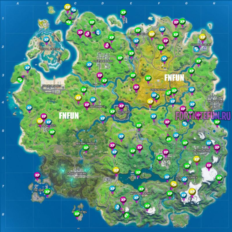 Карта золотых монет в фортнайт (все недели):