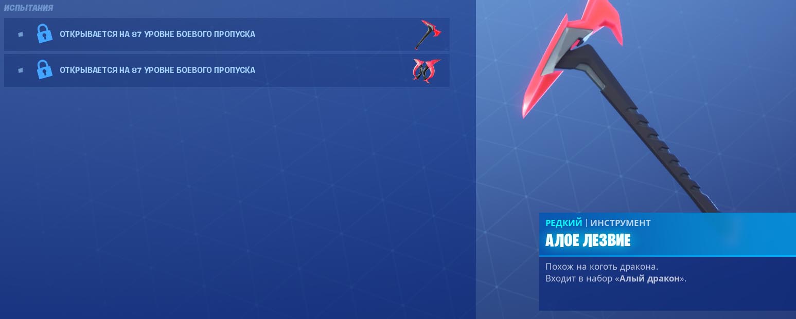 *Прежде чем полететь навстречу плате 94, поставьте в шкафчике кирку «Алое лезвие». Оно становится доступно на 87 уровне боевого пропуска, вместе со скином Деми.