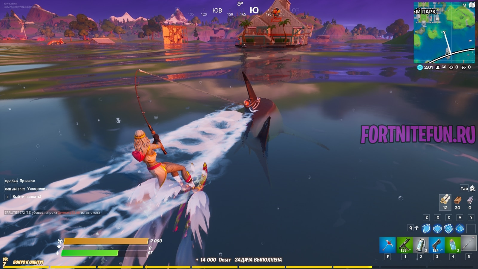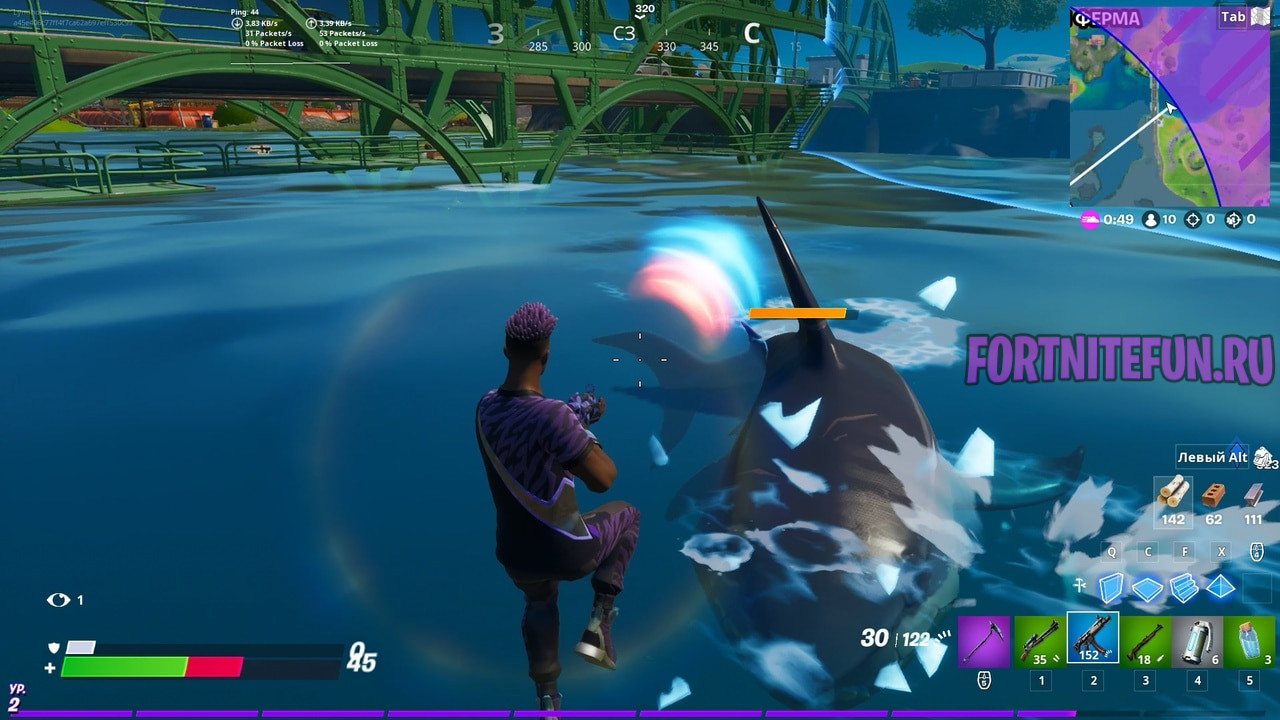 Акулы фортнайт, помимо смертельной опасности, могут представлять собой еще и транспорт. Вам необходимо рыбачить возле акулы или кинуть удочку в нее, чтобы она вас повезла на своем плавнике.