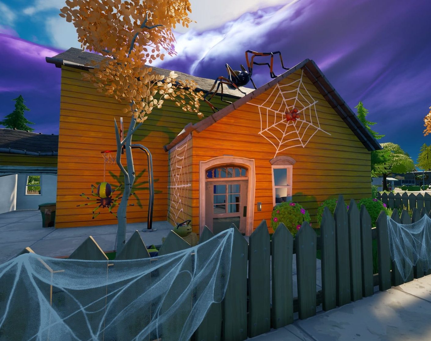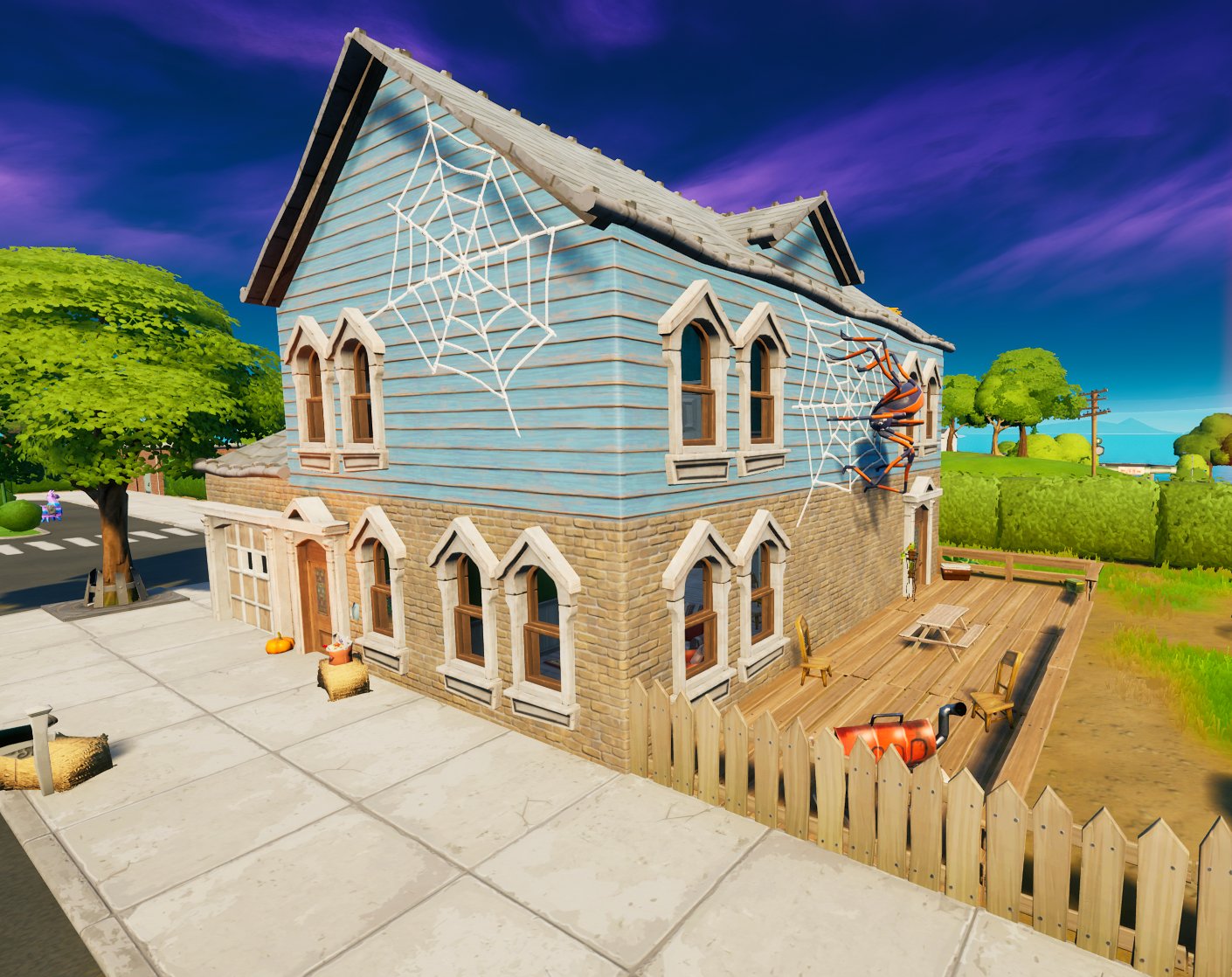 Наступает пора Хеллуина, и в фортнайт всячески к этому готовятся. Например, на зданиях во многих локациях появились украшения. То надувные фигурки, сошедшие словно со зловещих заправок, то паутина с огромными пауками, то тыковки. Одним словом — красота.