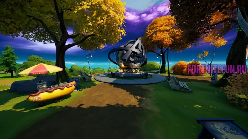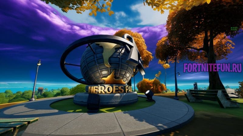 где находится парк героев в фортнайтПарк Героев (Heroes Park) — небольшой участок парка из вселенной Marvel, расположившийся на горе немного восточнее Рыдающей Рощи. Появилась достопримечательность во время 4 сезона 2 главы Fortnite.